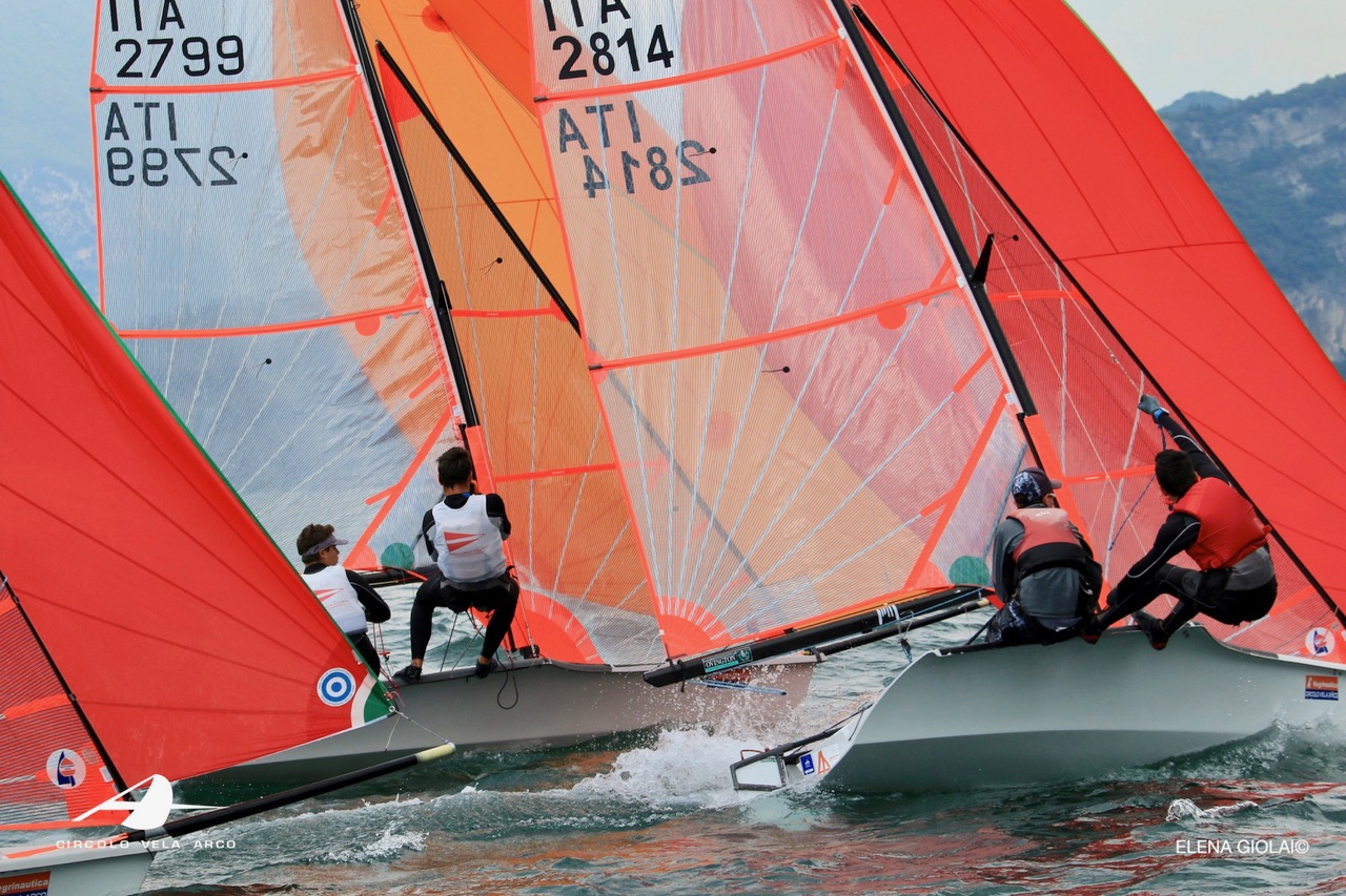 La classe Nacra 15 vede al comando l’equipaggio locale già vice-campione europeo con il timoniere Andrea Spagnolli, quest’anno con a prua Alice Cialti (Fraglia Vela Malcesine), protagonisti di tre primi. A seguire i cagliaritani (Windsurfing Club Cagliari) Nicolò Atzori e Roberta Cerciello (2-2-3). A due punti i portacolori del Centro Velico 3 V Carlo Centrone e Diana Passoni (4-3-2). Nella classe 29er prime due posizioni occupate da equipaggi femminili: in testa le siciliane (CV Sferracavallo) gemellate con la squadra del Circolo Vela Arco Sofia e Marta Giunchiglia, che con un 6-2-3 precedono di 7 punti le altre sorelle maltesi Antonia e Victoria Schultheis (7-9-2). Terzi gli atleti del Circolo Vela Arco Zeno Santini e Marco Misseroni. Protagoniste di un primo parziale le tedesche Schwachhofer-Stoltze (regata 3), gli italiani Gaia Bergonzini e Leonardo Toscano (regata 2) e i tedeschi Finn-Borlinghaus, che dopo la vittoria nella regata di esordio hanno realizzato un quinto, seguito da una squalifica per partenza anticipata, che potrà essere scartata solo dopo la quarta prova; a quel punto l’equipaggio attualmente ventunesimo, potrà risalire la classifica potendo insediare le primissime posizioni. Per sabato partenza prevista alle ore 9:30 con le previsioni meteo ancora incerte e possibilità di pioggia.