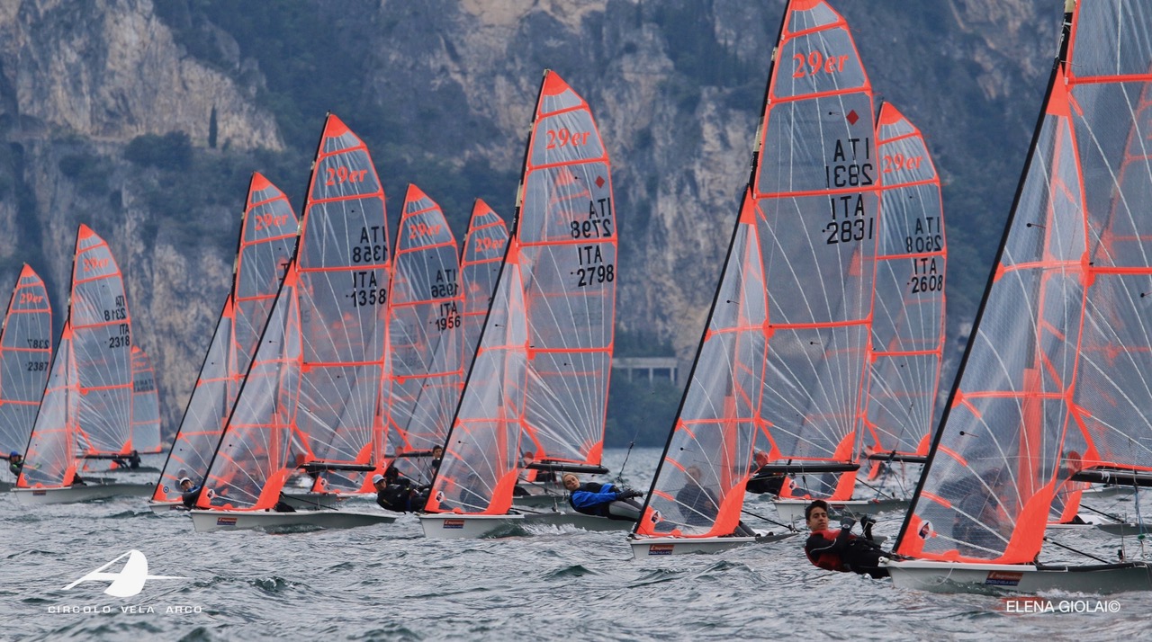 Pioggia e vento da nord hanno caratterizzato la terza ed ultima giornata della regata nazionale FIV delle classi giovanili 29er e Nacra 15, manifestazione organizzata dal Circolo Vela Arco e prologo dei Campionati europei del veloce skiff 29er in programma sul Garda Trentino ad agosto. Flotta agguerrita, nonchè internazionale con 5 nazioni presenti imposte nelle prime posizioni della classifica generale e dieci regate totali (con due scarti) il bilancio di questa tre giorni, che nonostante il tempo perturbato ha permesso di regatare in condizioni di vento varie: il primo giorno da sud, per poi proseguire con vento da nord per le altre 7 prove. E l’ultima giornata è stata particolarmente emozionante dato che i portacolori del Circolo Vela Arco Santini-Misseroni sono riusciti nell’impresa di sorpassare nella più numerosa classe 29er gli avversari e, anzi, lasciare addirittura 10 punti agli ungheresi Jeney-De Jonghe, risaliti anch’essi di una posizione, chiudendo secondi. Ultima giornata particolarmente positiva dunque per gli arcensi allenati da Lorenzo Bianchini Santini-Misseroni, che domenica hanno piazzato due primi e un nono poi scartato, dimostrando una buona prova di carattere, che li ha balzati nettamente in prima posizione, andando a vincere anche questa nazionale dopo quella disputata a fine aprile a Punta Ala. Giornata no per i tedeschi Finn-Borlinghaus, passati da primi a terzi. Ottima prova in generale dell’equipaggio misto Bergonzini-Toscano (Fraglia Vela Malcesine), quinti assoluti e secondo equipaggio italiano. Primo equipaggio femminile e settime in generale le sorelle Giunchiglia (CV Sferracavallo e gemellate con la squadra agonistica 29er del Circolo Vela Arco), rimaste sempre in testa nella propria categoria e rimaste prime di categoria davanti alle tedesche Möbius-Hesse e le maltesi Schultheis, con Vittoria già campionessa del mondo Optimist 2016. Nella top ten e terze femminili le atlete del Circolo Vela Arco Veronica Hoffer e Sofia Leoni, protagoniste di un bel sesto e secondo posto assoluto in regata 8 e 9, che le ha fatte risalire fino al nono posto generale.