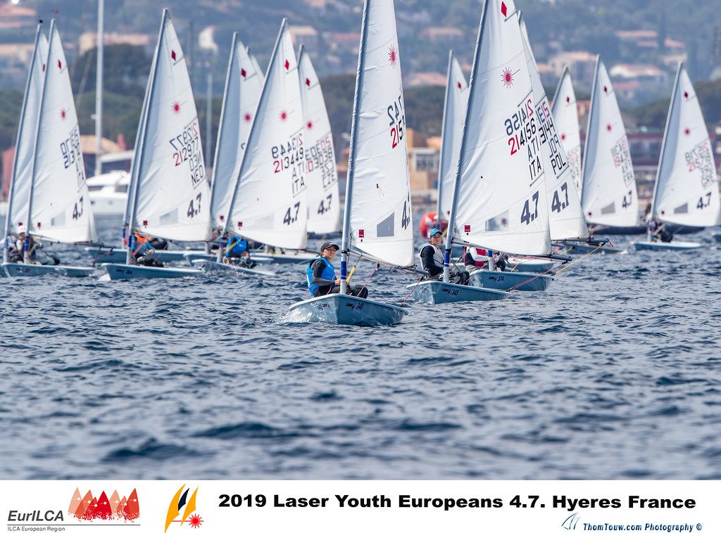 Dopo il vento forte della seconda giornata oggi a Hyères è calato il vento e il comitato di regata ha dovuto aspettare il pomeriggio inoltrato per iniziare a dare le procedure di partenza.