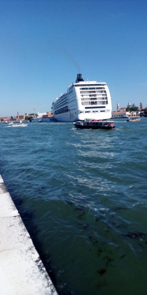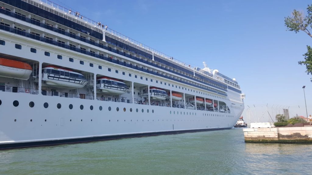 Una nave da crociera Msc è rimasta incastrata stamattina a San Basilio tra la banchina e un’altra piccola nave per crociere fluviali.