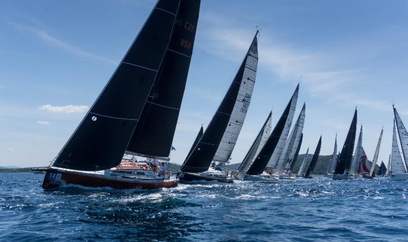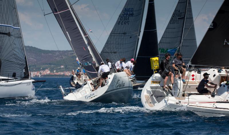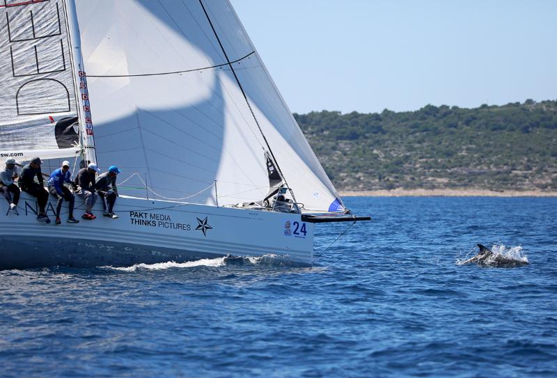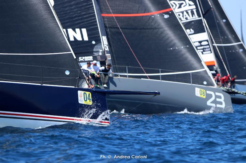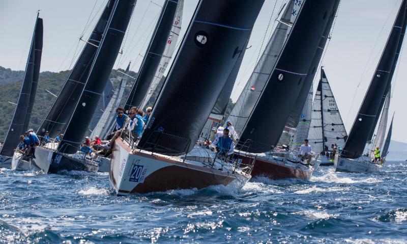 Appena partiti, le tattiche di navigazione scelte dai diversi equipaggi appaiono chiare e diversificate. Dopo aver lasciato la prima boa di bolina mure a sinistra, l’isola di Tijat si trova in linea con la prossima boa localizzata a Plic Cavlin. Tutta la flotta della Divisione A si dirigeva a nord lasciando Tijat sottovento, con il TP52 XIO di Marco Serafini che si trovava al comando e con l’altro TP52 di Roberto Monti Air is Blue subito alle sue calcagna.