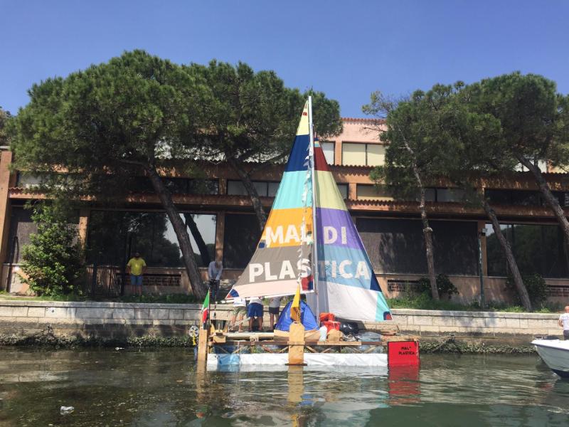 Uno sbarco un po’ insolito, ma molto atteso e altrettanto gradito, questa mattina a Venezia. E’ giunto infatti da Rimini il catamarano costruito dai ragazzi del progetto “Mal di plastica” utilizzando 3.000 bottiglie di plastica riciclate, reti da pesca abbandonate, 6 paia di sci e vecchie tende da sole.