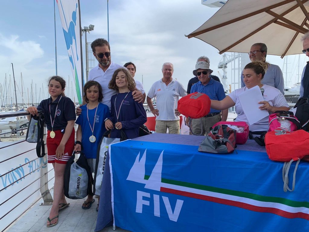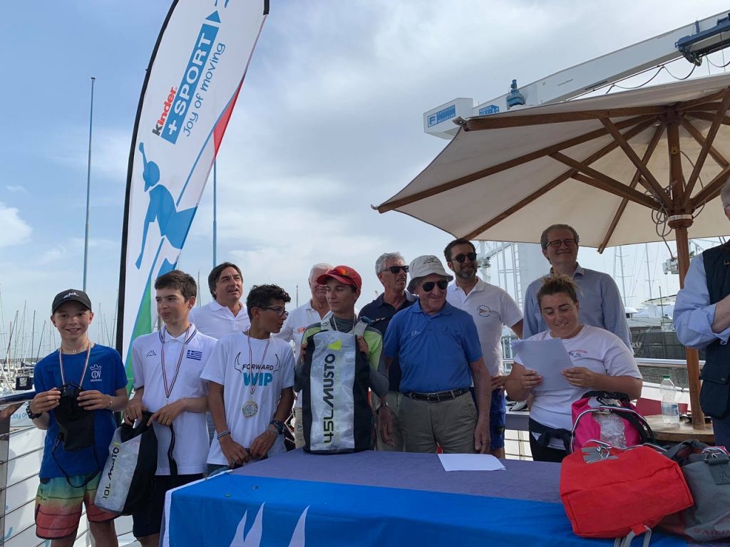 Le regateLa categoria juniores ha corso 5 regate sulle sei programmate, mentre i più piccoli cadetti (9-10 anni) ne hanno finite regolarmente 4, con la quinta interrotta per calo di vento. Tra gli juniores non fallisce un colpo il bi-campione del mondo Marco Gradoni (Tognazzi Marine Village), che ha infilato 5 primi con la sua solita perfezione di conduzione del mezzo. Risalito al secondo posto l’altro azzurro che rappresenterà l’Italia ai mondiali di Antigua del prossimo luglio Davide Nuccorini (Circolo della Vela Roma), terzo il francesce Zou Schemmel. Ottava in generale e prima femmina ancora una portacolori del Tognazzi Marine Village (IV Zona FIV, Lazio) Sophie Fontanesi, seguita dalla triestina Beatrice De Santo (SN Pietas Julia) e Claudia Quaranta (CV Bari). Nella categoria cadetti è stato prezioso per Francesco Tesser lo scarto ottenuto dopo la quarta prova, considerata la squalifica inflitta nella prima giornata con i relativi 81 punti in carico: il giovane velista della Triestina della Vela, si è meritato di vincere dato che ha riscattato la squalifica con un ulteriore primo posto, che sommato agli altri due di sabato, gli sono valsi la vittoria con 4 punti di vantaggio sul barese (LNI Bari) Francesco Carrieri, anche lui colto in partenza anticipata nel primo giorno, ma ben recuperata con gli altri 2-2-3. Terzo Tommaso Geiger (Circolo della Vela Muggia). Sara Anzelotti (LNI Ostia) ha vinto tra le femmine, chiudendo ad un ottimo quarto assoluto, seguita a ruota dalla siciliana Gilda Nasti (CN Nic Catania); terza femmina Anna Merlo (Centro Vela Alto Lario). Le tappe del Trofeo Optimist Italia Kinder + Sport riprenderanno a fine luglio con la Coppa AICO-Coppa Touring, in programma a Ravenna dal 26 al 28 luglio. Sarà invece l’Alto lago di Garda a riempirsi di vele Optimist il prossimo week end con una delle più “vecchie” regate dedicate agli Optimist, il 45° Trofeo Optimist d’Argento organizzato al Circolo Vela Torbole dal 14 al 16 giugno.