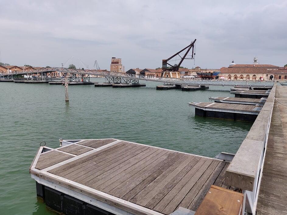 Nelle ultime ore è stata anche ultimato il ponte galleggiante he consentirà ai visitatori di spostarsi da una parte all’altra del complesso e delle Darsene.