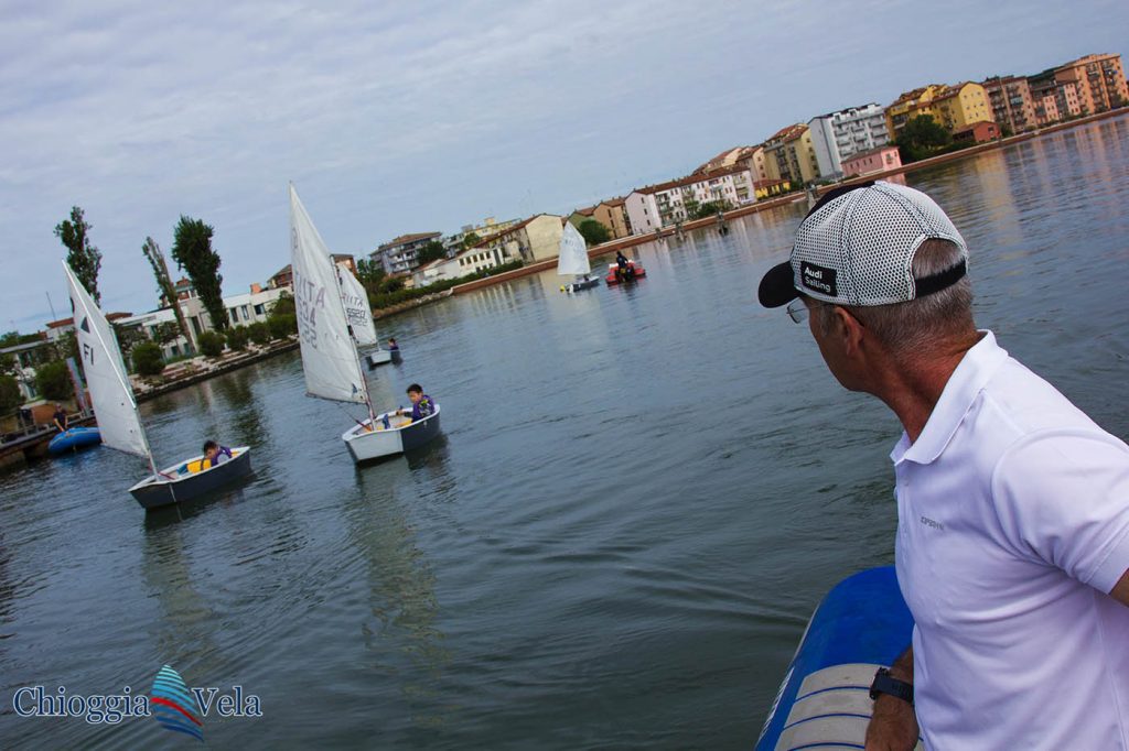Da allora Chioggiavela Junior è andata avanti con numeri sempre più soddisfacenti, anche quest’anno sono state 360 le adesioni di alunni di numerose scuole, la settimana di prove veliche in Lusenzo è stata preceduta da alcune lezioni teoriche grazie all’Istruttore Riccardo Chiereghin che ha trovato anche il modo di portare nelle palestre delle scuole un Optimist vero e proprio per meglio illustrare le parti di una barca a vela e simulare i primi movimenti a bordo. La settimana di prove veliche non è certamente stata fortunata dal punto di vista meteo e non solo, soppresso il lunedì con le scuole chiuse per seggio elettorale, annullate per pioggia le giornate di martedì e mercoledì, siamo riusciti a portare in barca i ragazzi nelle giornate di giovedì e venerdì recuperando poi anche il lunedì successivo.