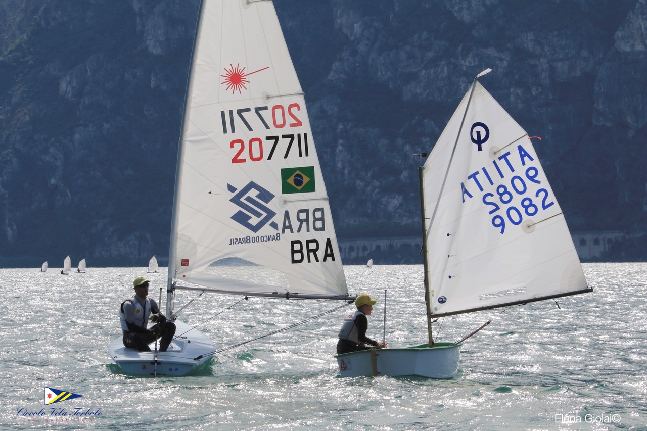 La flotta in acqua ha visto sia timonieri di livello con alcuni rappresentanti della squadra azzurra selezionata ai mondiali, che bambini meno esperti, che hanno però avuto l’emozione di regatare con i più navigati ed esperti. Il vento in media è stato sugli 8 nodi con raffiche sui 12 per un breve periodo. La classifica provvisoria- ancora in elaborazione – evidenzia le vittorie parziali nella batteria gialla rispettivamente di Michele Adorni (Canottieri Marsala) e del bi-campione del mondo Marco Gradoni (Tognazzi Marine Village); di Manuel De Asmundis (Fraglia Vela Riva) e Enrico Coslovich (CDV Muggia) nella due prove della batteria rossa; vittoria in rosa nella batteria blu nella prima regata con Lisa Vucetti (Barcola Grignano), davanti all’ungherese Barna. Vittoria in regata 2 dell’altro ungherese Attila Toth seguito da Riccardo Andreoli (CV Gargnano).Nei cadetti bella lotta nel bordo di poppa tra il portacolori del Circolo vela Torbole Erik Scheidt e Mattia Benamati (Fraglia Vela Malcesine, che ha poi ceduto al grintosissimo figlio d’arte, che poco dopo l’arrivo ha trovato papà Robert sul suo Laser (si sta preparando infatti alla sua settima olimpiade dopo aver conquistato 5 medaglie), a dargli qualche consiglio. Ma il Trofeo Optimist d’Argento è anche condivisione di passioni e momenti di festa, come quello a cui si assiste al rientro di ogni giornata di gare con Krapen party per questo pomeriggio, Nutella e pasta party per le due prossime giornate!