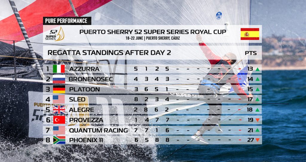 La terza giornata della 52 Super Royal Cup di Puerto Sherry 52 è in programma domani dalle 14.00 fino a sabato. Tutta l’azione sarà trasmessa sulla 52 SUPER SERIES TV da domani e fino a sabato, con streaming live-action dall’acqua supportato da commenti dal vivo insieme ad esperti del circuito. Tutti i programmi saranno in onda 15 minuti prima dell’inizio delle regate e potranno essere goduti su www.52SUPERSERIES.com o tramite l’app.