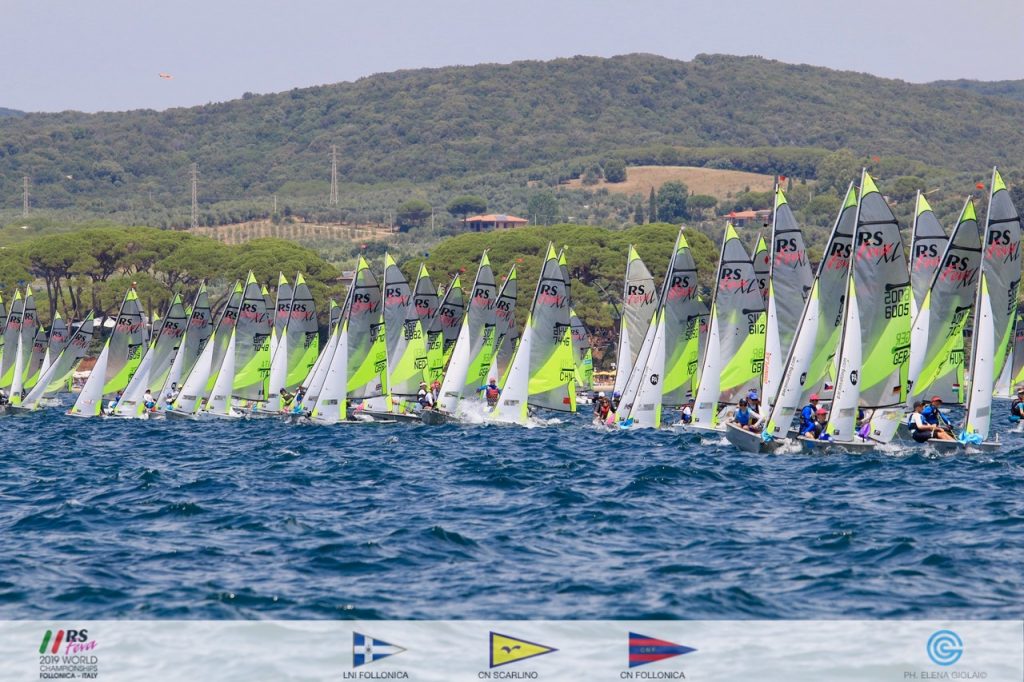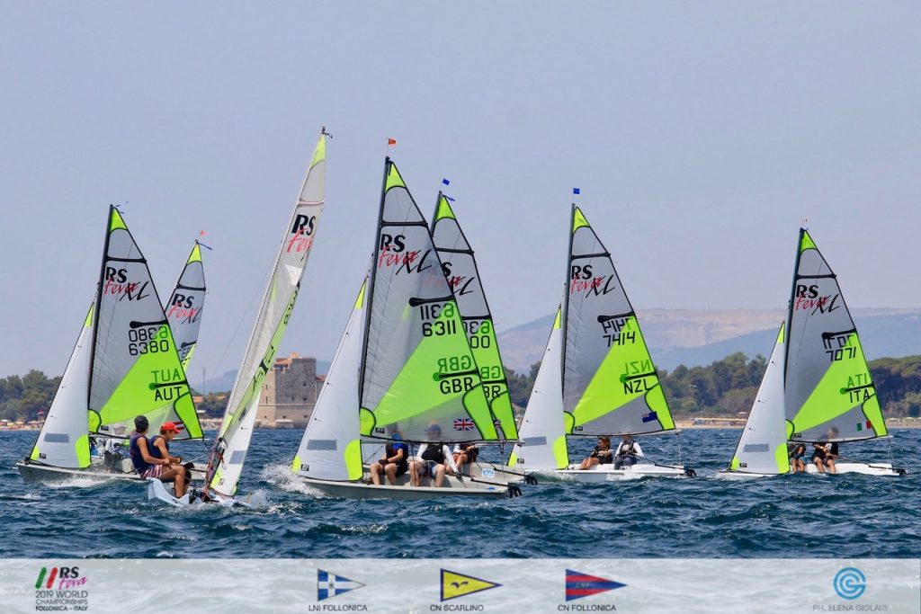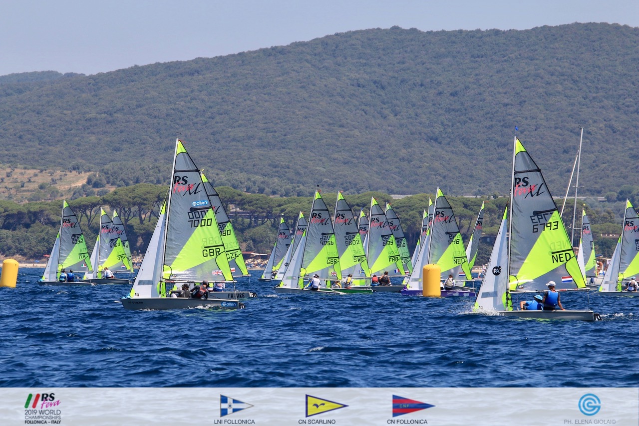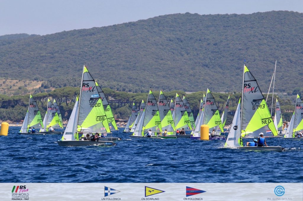 Prosegue a gonfie vele il Mondiale RS Feva in svolgimento sul Golfo di Follonica: con ulteriori 3 regate del secondo giorno -portando a 6 il numero di prove totali – è già stato possibile selezionare la flotta di 200 equipaggi con i migliori 67 che entrano in gold fleet e poter così proseguire il mondiale con ulteriori possibili 8 regate, vedendo i migliori in campo regatare nella stessa batteria.