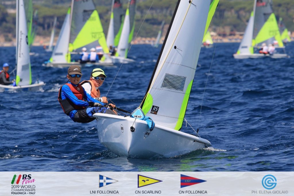 Sul Golfo di Follonica si è conclusa con le ultime due regate di venerdì una splendida settimana di vela dedicata ai Campionati Mondiali del doppio giovanile RS Feva. La manifestazione, organizzata ottimamente dal pool di circoli GV LNI Follonica, Club Nautico Follonica e Club Nautico Scarlino ha segnato il nuovo record di partecipanti per un Mondiale di questa classe, molto sviluppata in Gran Bretagna e che in Italia sta raggiungendo numeri importanti, che d’ora in poi – grazie anche a questo mondiale – potranno essere seguiti da una crescita tecnica altrettanto importante.