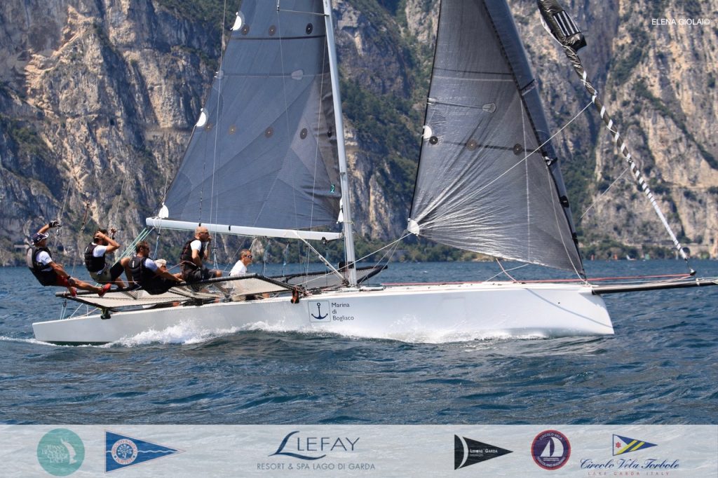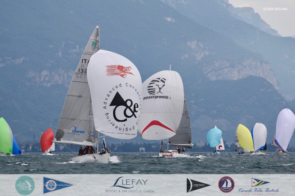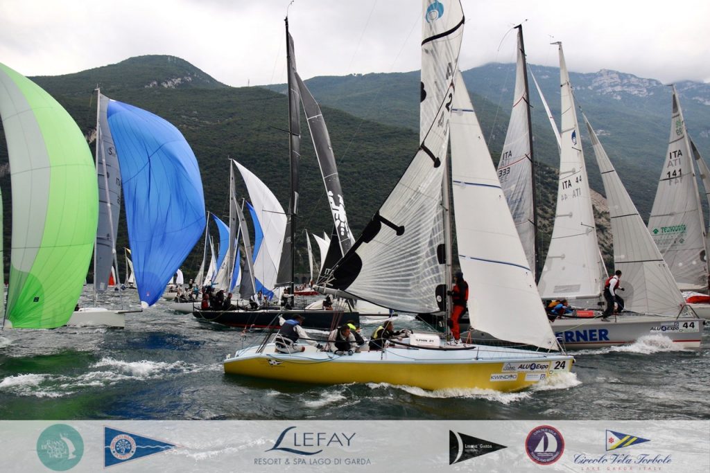 La prima tappa Portese – TorboleSole, bel vento da nord e soprattutto onda all’uscita del Golfo di Salò hanno caratterizzato la prima metà del percorso Portese-Torbole, dopo l’insidiosa partenza davanti a Portese tra le deboli raffiche, che via via si sono rinforzate avanzando verso nord del lago. Come da copione la flotta ha dovuto affrontare la calma di vento nel momento in cui, intorno a mezzogiorno, il pelèr “muore” e non resta che attendere l’arrivo del vento da sud, che man mano che ci si avvicina a Limone prima e Torbole poi, aumenta sempre più. Ed è qui che la pazienza che contraddistingue il velista deve rimanere salda, per poi saper cogliere prontamente i primi “segni” dell’ora, che fa ripartire le barche verso Torbole. E’ così infatti che piano piano, all’altezza della boa di Limone le barche dopo una bella bolina si sono messe in assetto di poppa per essere sospinte dal vento da sud, che le ha portate fino alla linea di arrivo dopo circa 4 ore di navigazione, poco più di 6 per l’ultimo. Prima a tagliare il traguardo in tempo reale naturalmente una barca della classe Hi Tech, Eclisse. Primo ORC sempre in tempo reale, Lexotan.Nel tardo pomeriggio, fortunatamente con tutte le barche rientrate nel porto del Circolo Vela Torbole, si è abbattuto un violento temporale, che non ha però rovinato la festa organizzata presso il Circolo Vela Torbole, che è riuscito ad offrire comunque una bella grigliata allietata da musica per tutti i partecipanti, nel ristorante della ristrutturata sede.