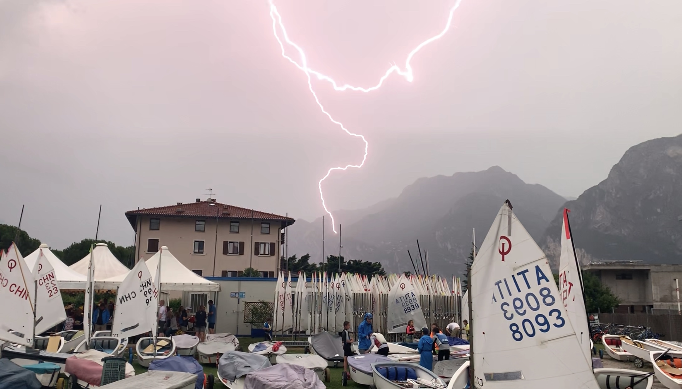 Giornata di attesa tra un temporale e l’altro oggi al Circolo Vela Arco, sul Garda Trentino, per gli 80 cadetti (9-10 anni) e i 482 juniores (11-15 anni) iscritti alla 25^ Ora Cup Ora della classe Optimist, numero che rappresenta il nuovo record della manifestazione.