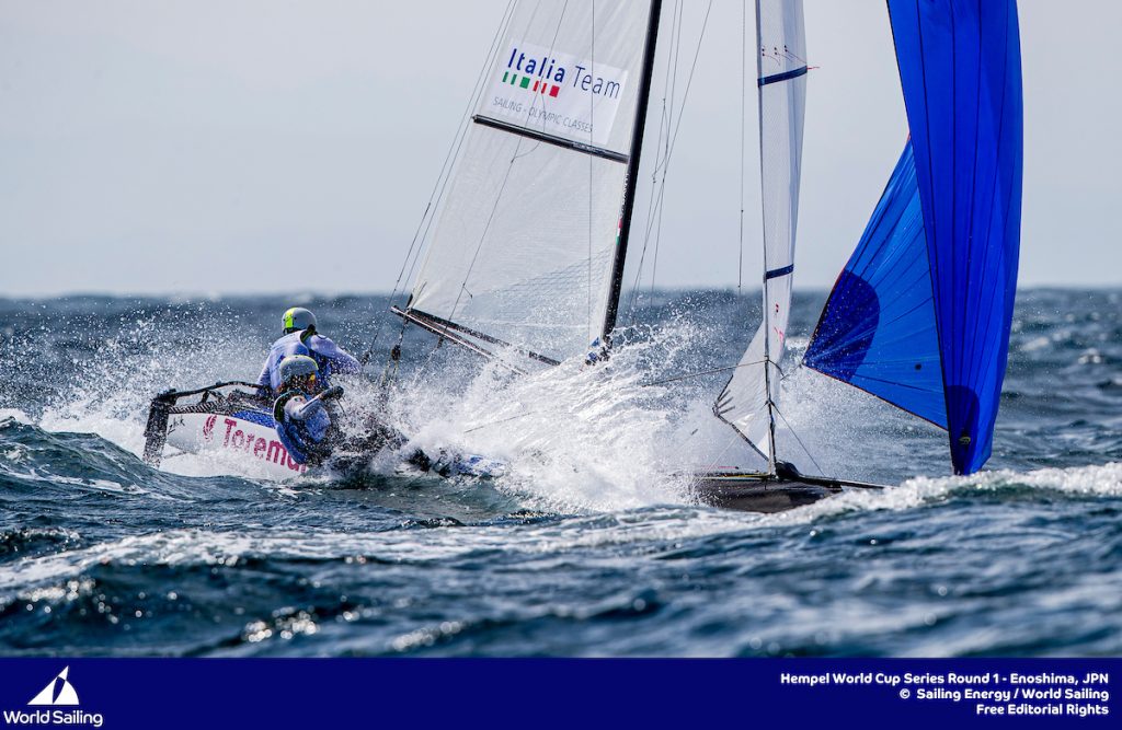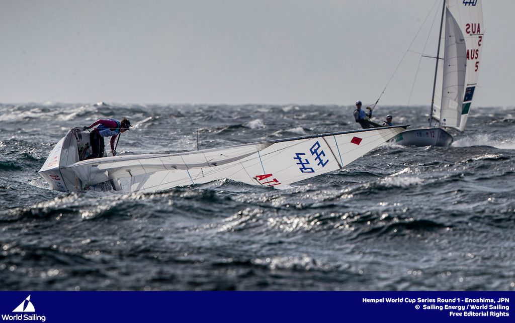 Un’altra giornata di vento e onda nella baia di Hayama sul campo olimpico di Enoshima, in Giappone, ha accolto i quasi 500 atleti provenienti da 46 nazioni per il giorno tre delle regate delle Hempel World Cup Series. 20-25 nodi da sud-ovest e onde fino a due metri e mezzo hanno messo a dura prova gli equipaggi, e sui diversi campi è stato un vero e proprio rodeo con diverse scuffiate, rotture e infortuni, ma nonostante questo il comitato è riuscito a far recuperare alle dieci flotte alcune delle prove perse durante il primo giorno di vento leggero e ieri con vento troppo forte.