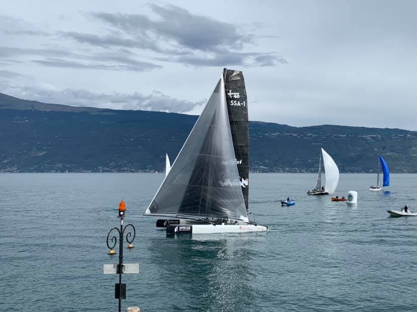 Bisogna attendere circa due ore, le 18:45, per vedere tagliare il traguardo di Bogliaco a Raffica, primo dei monoscafi.