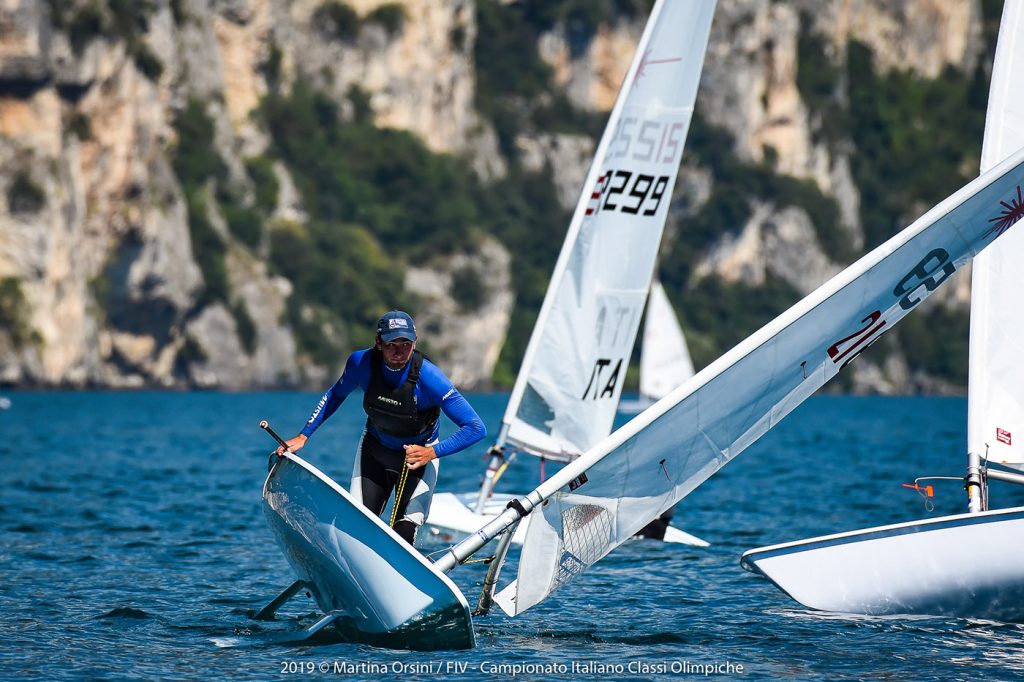 Nei campi più a nord, davanti all’Univela di Campione del Garda, Matteo Evangelisti è primo negli RS:X con due primi ed un terzo posto di giornata, dietro di lui Daniele Benedetti (SV Guardia di Finanza) con un primo e due secondi e quindi il giovanissimo Nicolò Renna (CS Torbole) con un secondo e due terzi. Giorgia Speciale (CC Aniene) è la prima donna, con 7, 6, 6, Laura Linares (CC Roggero di Lauria) è la seconda con 11, 10, 8 e Veronica Fanciulli (CS Aeronautica Militare) è terza (10, 9, 11). Le tavole a vela corrono su campo misto, ma va detto che l’ampiezza delle vele delle ragazze è inferiore a quella dei ragazzi.