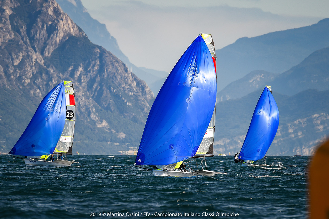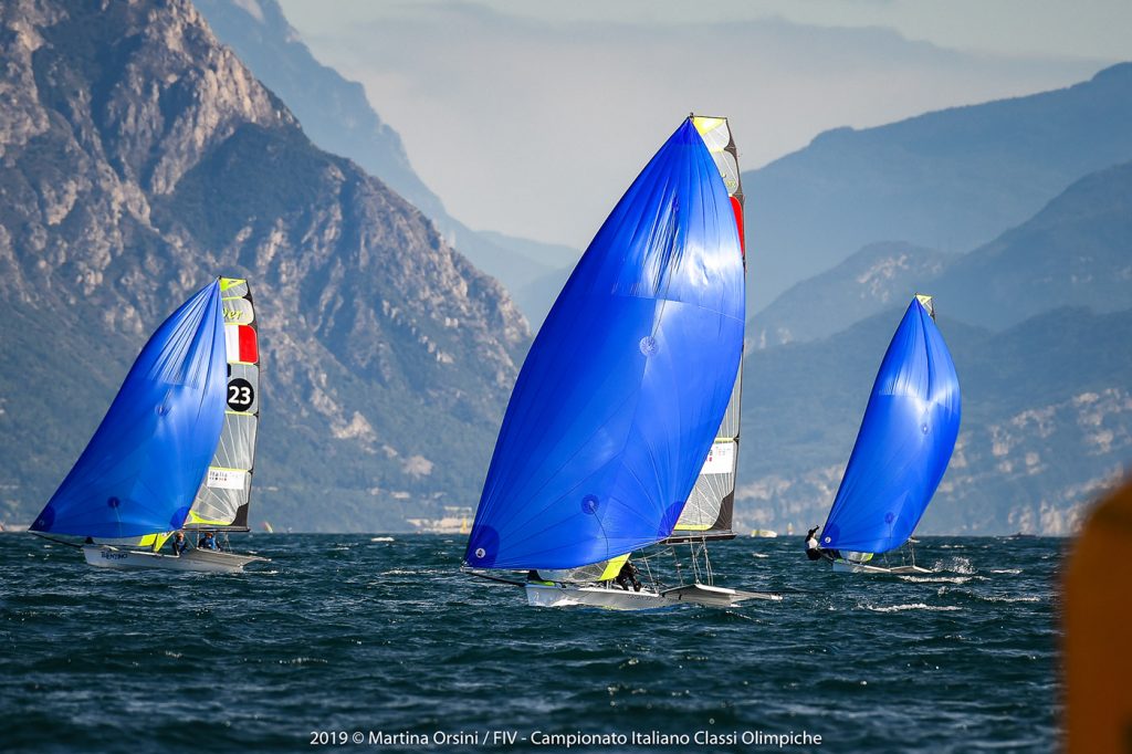 Giorno due del CICO 2019 che torna sul lago di Garda dopo la prima edizione dei Campionati Italiani a Classi unificate del 1994, ma il Benaco non regala le condizioni meteo che lo hanno reso famoso in tutto il mondo. Le dieci classi olimpiche più i 2.4 ed i Kitefoil sono usciti presto questa mattina per regatare con il Peler, il vento da nord, ma verso le 9 era già in calo e le flotte hanno atteso in acqua l’Ora, la brezza da sud, che, come ieri, non è mai entrata prepotente e si è fermata sui 5/6 nodi. Nonostante ciò ogni classe oggi ha una classifica, e i paralimpici 2.4, con il ‘microclima’ del golfo di Salò, hanno addirittura concluso altre tre prove e sono in linea con il programma.