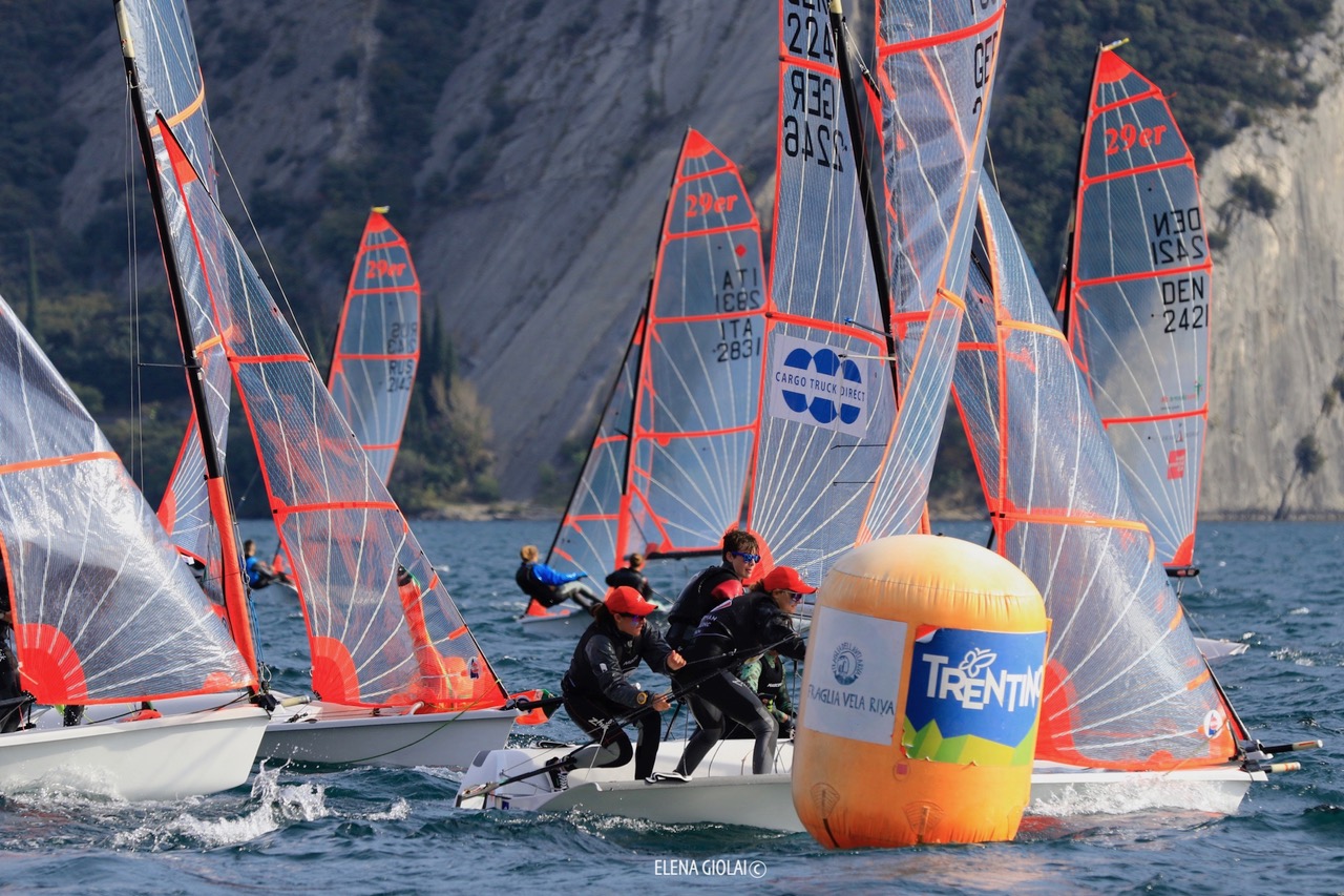 Tra i primi 10 sono 7 le nazioni rappresentate in classifica con la sola Danimarca ad avere 3 suoi equipaggi in top ten. Per quanto riguarda la categoria femminile ancora in testa le tedesche Krapp-Bolinghaus, mentre sono passate seconde le sorelle Giunchiglia (CV Sferracavallo), che hanno approfittato anche della rottura di una drizza delle altre tedesche Schachhofer-Stoltze, partite regolarmente solo nella quarta e ultima prova di giornata. Sabato la conclusione di questa 29er Eurocup, che dopo un avvio difficile, sembra proseguire con un bel finale caratterizzato da sole, vento e tante regate. Una bella soddisfazione per tutto il Comitato di regata FIV e lo staff posa-boe della Fraglia Vela Riva, che dopo aver gestito le prime due complicatissime giornate ha potuto, con le regate di venerdì, riprendere un ritmo di gara normale e in target con la località, che solitamente assicura vento e tante regate.