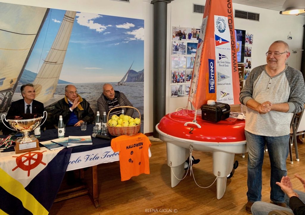 Carlo Pompili Presidente Circolo Vela Arco: “complimenti per questa Halloween Cup, che ha il numero incredibile di 600 iscritti in un periodo dell’anno che potrebbe essere bassa stagione: noi circoli, tutti insieme, portiamo qui sul lago di Garda centinaia, migliaia di velisti da tutto il mondo e da oggi vogliamo offrire un messaggio forte, oltre che un servizio migliore per le regate stesse; i Comuni, la Provincia, le istituzioni tutte, devono cercare di venirci incontro in questi nostri sforzi, che con il progetto roboboe toccano la sfera ecologica”.