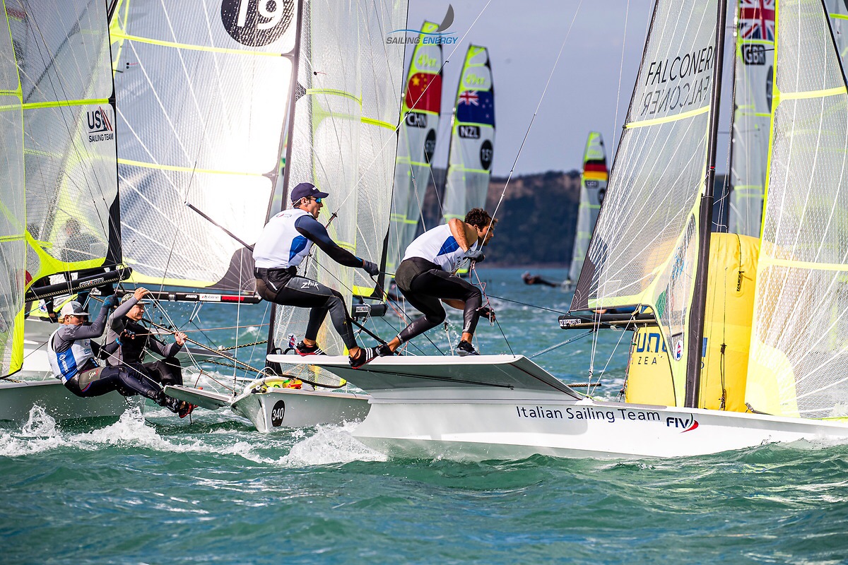 Partenza ventosa quindi per i tre Mondiali delle classi olimpiche acrobatiche: dalle prime ore su Auckland ha soffiato vento da Nord a oltre 25 nodi, e il Race Management ha deciso da subito di annullare il programma del mattino rinviandolo al pomeriggio. Poi il vento è aumentato a 30 nodi e in alcuni momenti sono state registrate raffiche a 39.