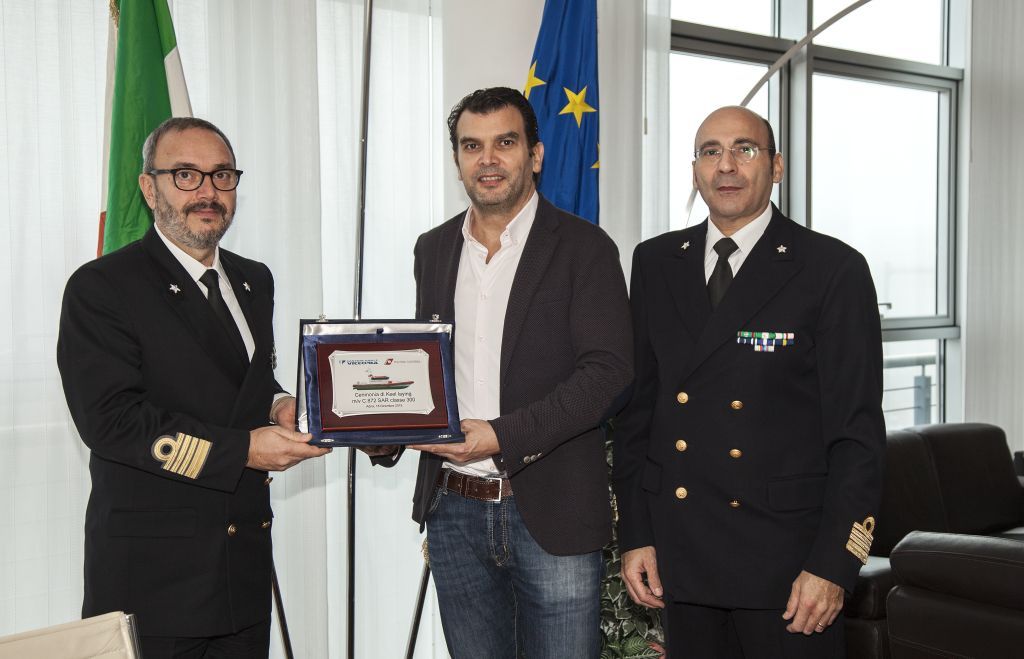 A conclusione della visita, il Cantiere Navale Vittoria ha consegnato ai rappresentanti delle Corpo delle Capitanerie di porto una targa celebrativa.