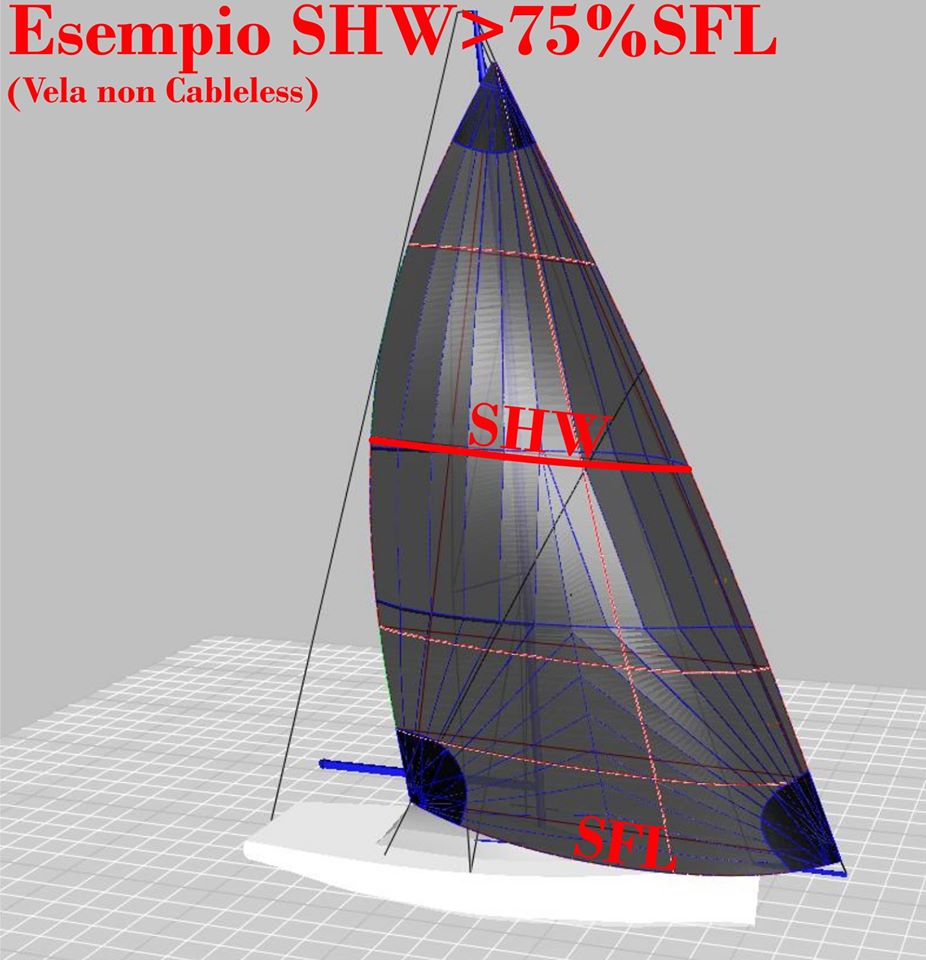 “Andiamo per ordine: il vecchio concetto del Code Zero con la mezzeria (SHW) “larga” il 75% della base (SFL) , fino ad ora “trasparente” al certificato, non esiste piu’, per ottenere lo stesso beneficio la larghezza dovra’ essere oltre l’ 85% e francamente sara’ molto difficile disegnare un code efficiente come prima. Tutti i “code” fra il 75% e l’ 85% influiranno in certificato come Flying Set Sails e saranno misurati come asimmetrici “stretti”; tutte le altre vele con la larghezza inferiore al 75% della base, fino ad arrivare al Drifter, saranno invece misurati con i parametri attuali delle Headsail e anch’ esse ovviamente inserite in certificato come Flying Set Sails“.
