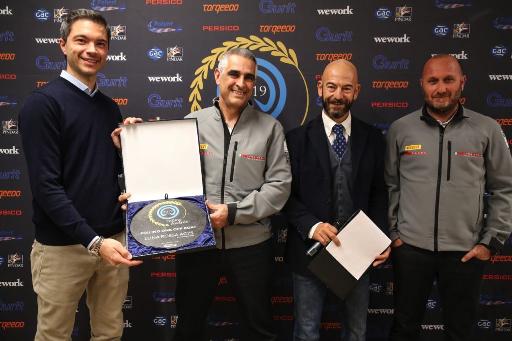 Il primo dei Foling Award consegnato, che ricordiamo sono assegnati sulla base dei voti espressi da una giuria popolare tramite voto inline alla proposte selezionate da Foling Week, è stato quello per l’imbarcazione One off . Vittorio Magnaghi, responsabile settore marino della Gurit, l’azienda che produce materiali compositi avanzati ha premiato l’AC75 Luna Rossa nella persona di Horacio Carabelli, co-designer coordinator del team Prada Pirelli, accompagnato dallo Team Director e skipper Max Sirena. L’ingegnere dell’equipaggio italiano a nome di tutto il team ha così dichiarato: «Siamo molto onorati di ricevere questo premio che gratifica due anni di impegno e costante ricerca. È stato un lavoro di squadra che ha coinvolto tutti, dal design team allo shore team, dal sailing team ai fornitori. Tutti con un unico obiettivo, realizzare un mezzo performante e all’avanguardia».