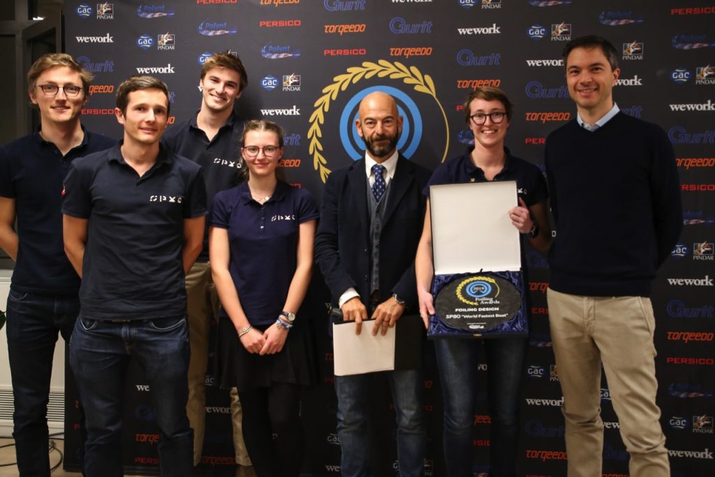 Per le imbarcazioni di serie, il Foling Award Production, conteso tra BirdyFish, Nautor’s ClubSwan 36, Nikki by Skeeta Foiling Craft, Peacoq 14, Pogo Foiler, SYRA-Foilers NTFM-SYRA18, T-Foiler 35 è andato al Syra 18, il primo monoscafo con foil di serie. A ritirare il premio Nils Frei e Yves Detrey di Syra foilers e a consegnare Paolo Manganelli (principal engineer) di Gurit.