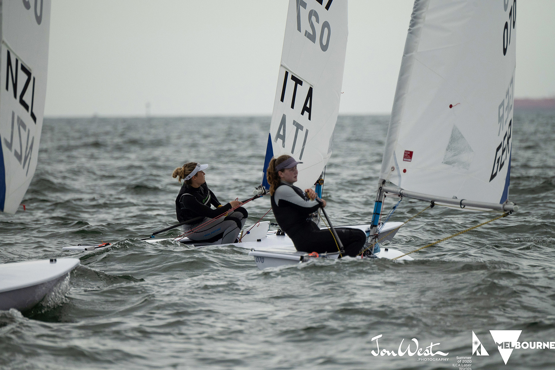 Secondo giorno al Mondiale del singolo olimpico femminile Laser Radial (o Ilca Dinghy, come preferite!) di Melbourne, meteo ancora protagonista in negativo. E’ stata un’altra giornata difficile, con cielo coperto e pioggia a tratti che ha impedito alla brezza termica di stendersi, lasciando sul campo di regata solo arie leggere da SSE mai oltre i 6 nodi e molto mutevoli di direzione. A fatica il Comitato di Regata è riuscito a portare a termine una sola prova per ciascuna delle due batterie.