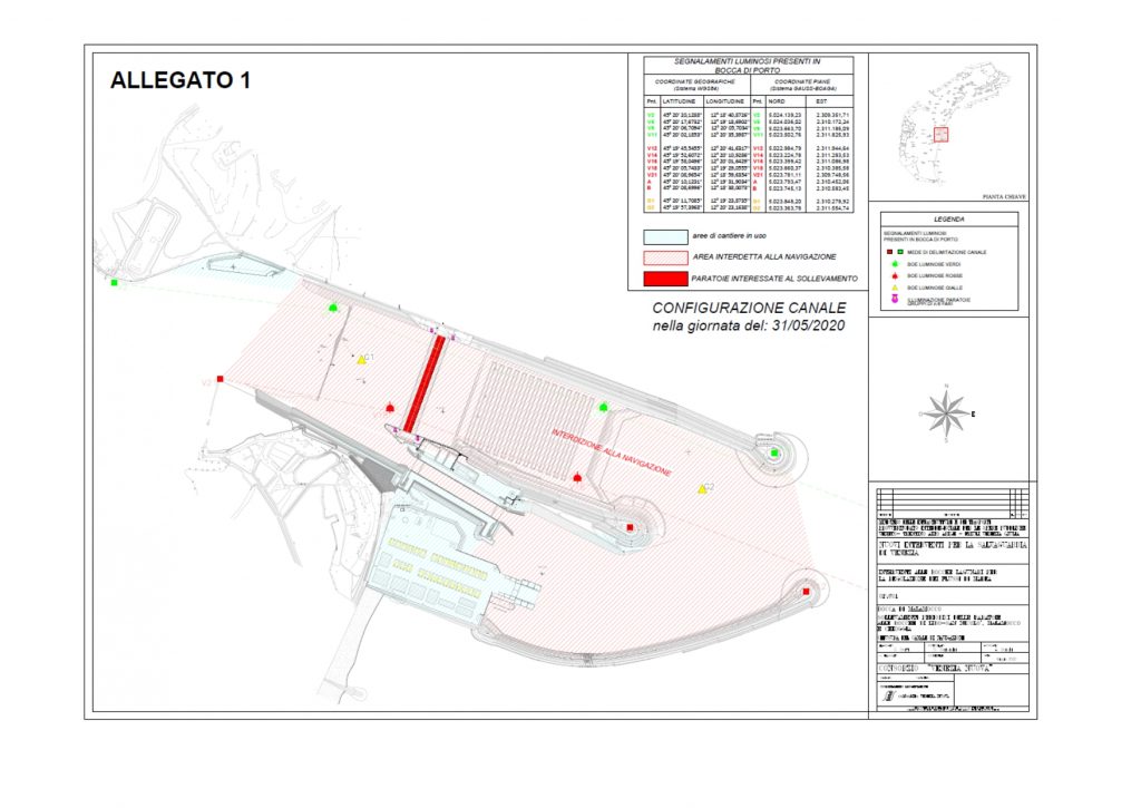 A seguito del sollevamento delle paratoie del Mo.S.E. le imboccature dei porto di Chioggia e Malamocco risulteranno chiuse, con conseguente impossibilità per il traffico navale di qualsiasi tipologia di entrata ed uscita dalle ore 13.00 alle ore 20.00.