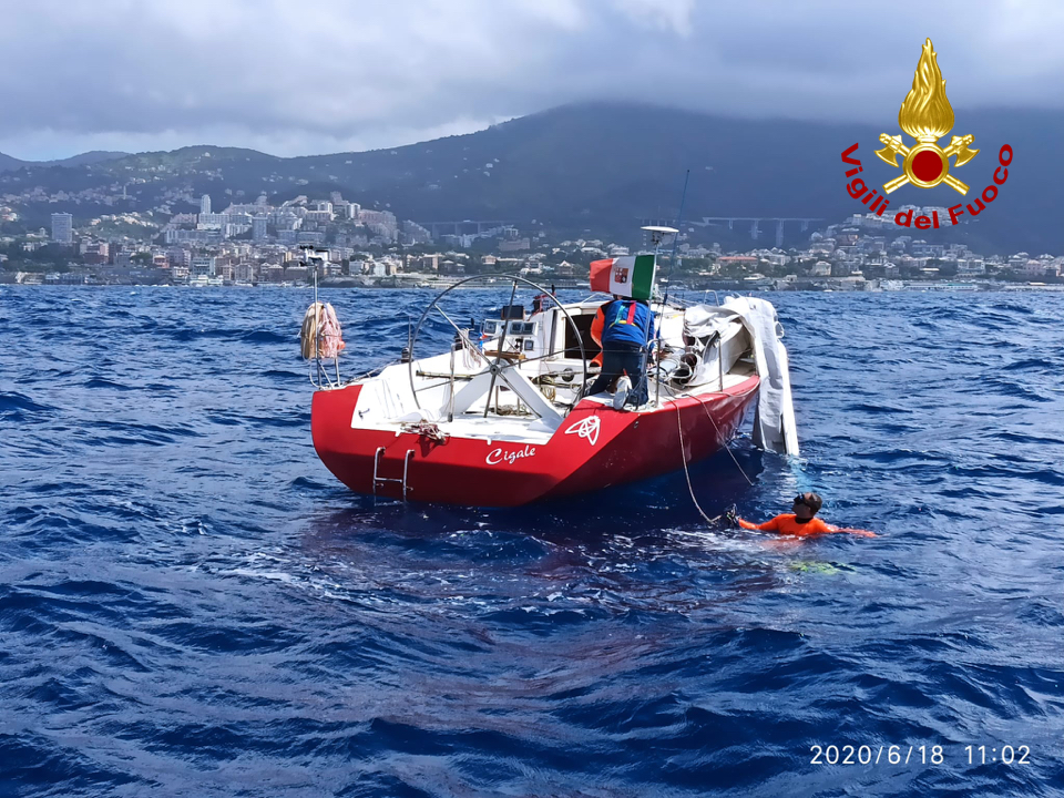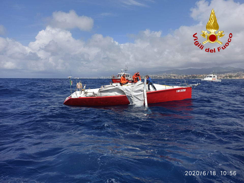 Intervento questa mattina dei nautici e dei sommozzatori dei Vigili del fuoco di Genova per soccorrere l’equipaggio di un’imbarcazione in difficoltà e impossibilitata alla navigazione dopo aver disalberato. Liberata l’imbarcazione dalla vela, il natante ha potuto proseguire a motore il rientro in porto.