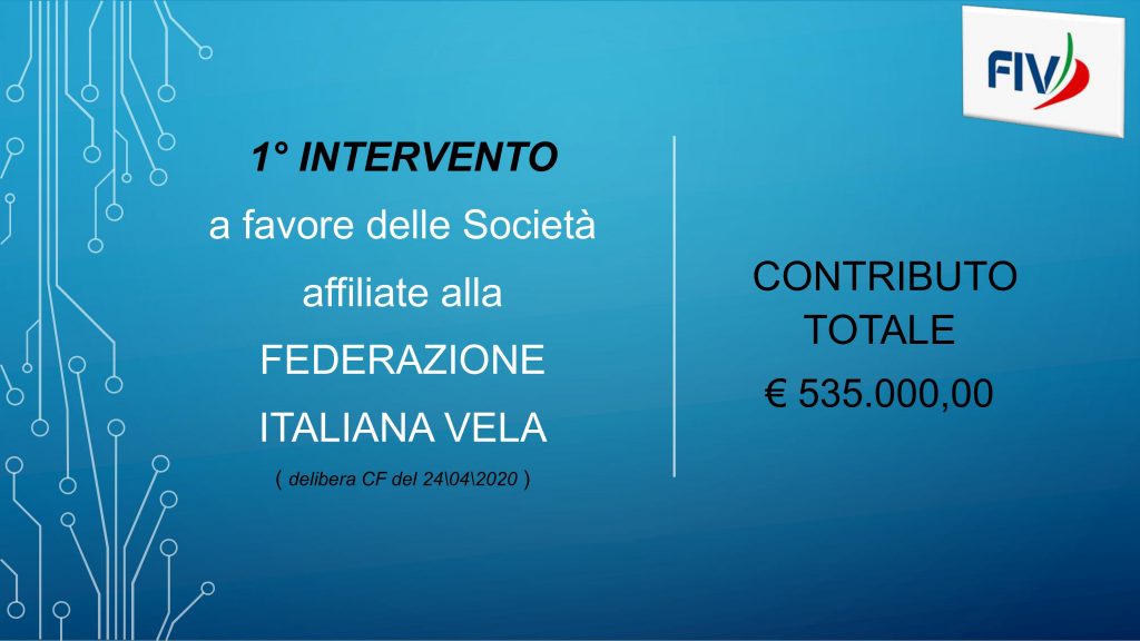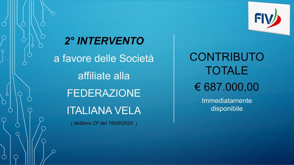 La manovra di aiuti varata oggi si aggiunge alla precedente, attuata a fine aprile per altri € 535.000 e in corso di attuazione, la quale prevede contributi e aiuti erogati a seguito dei dati relativi alle attività (tesseramento, scuola vela). La differenza è dunque che questa seconda tranche di aiuti è, come detto, immediatamente disponibile.
