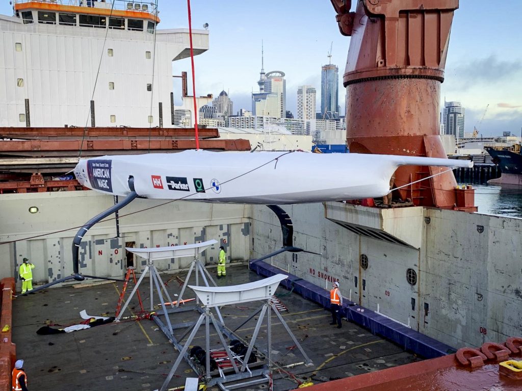 DEFIANT, il primo yacht da regata AC75 costruito per l’American Club di New York American Magic, Challenger per la 36a America’s Cup, è arrivato in Nuova Zelanda. L’AC75 fu spedito attraverso il Golfo del Messico, attraversò il Canale di Panama e poi attraversò il Pacifico dopo essere partito dalla base invernale della squadra a Pensacola, in Florida, il 28 maggio.
