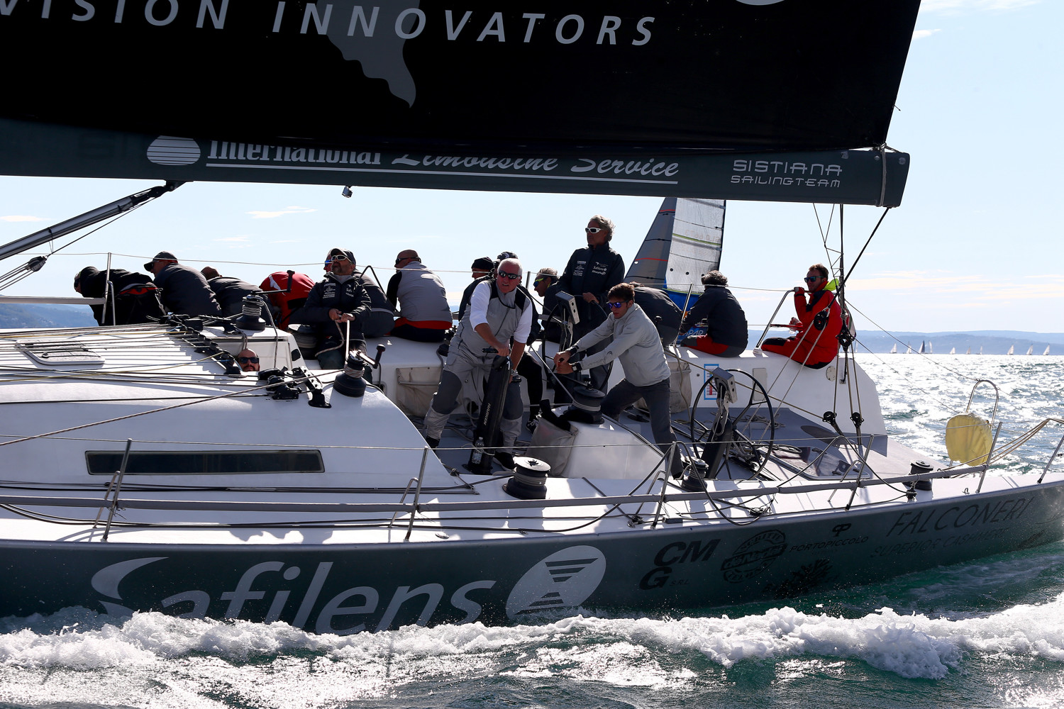 Progettato dal prestigioso studio German Frers nel 2000, Anywave è realizzata completamente in fibra di carbonio. Le linee dello scafo, i sistemi tecnologici avanzati e il ridottissimo dislocamento la rendono estremamente competitiva sia in prove costiere che d’altura, in particolare nelle regate a compenso IRC o ORC. È il 2015 quando un gruppo di velisti del Sistiana Sailing Team acquistano lo scafo quasi abbandonato e lo riportano all’antico splendore, cominciando ad inanellare una serie di vittorie nei più prestigiosi campi di regata internazionali, in competizioni riservate ai Maxi, nelle lunghe e nella classica Barcolana, a cui l’equipaggio non manca mai.