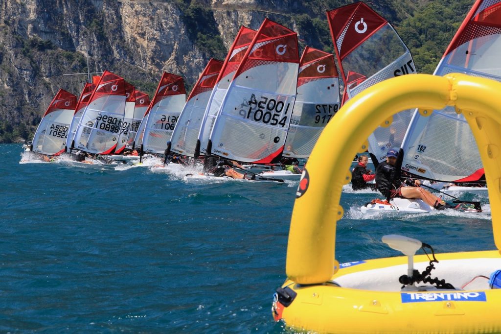 Il Garda Trentino ha regalato altre tre fantastiche giornate alla sessantina di giovani velisti arrivati da tutta Italia per partecipare alla regata nazionale FIV del singolo Open Skiff, manifestazione organizzata dal Circolo Vela Arco, su delega della Federazione Italiana Vela, per bambini e ragazzi dagli 8 ai 17 anni, impegnati su questa barca veloce, acrobatica e divertente. Dopo le prime due giornate in cui si è regatato nel classico orario dalle 13 alle 17 circa disputando 7 regate (4+3), mercoledì, ultimo giorno in programma, le condizioni sono state opposte dato che è stata data partenza alle 8:30 con il vento da nord, più rafficato e con acqua piatta rispetto all”ora” del pomeriggio. Condizioni che hanno fornito un range di prove diverse tra loro e dato la possibilità a tutti di mostrare il valore tecnico in campo con ulteriori tre regate per un totale di 10 prove e l’applicazione di 2 scarti. Il campo di regata è stato posizionato con le nuove boe elettriche del Consorzio Garda Trentino Vela, che hanno mantenuto la posizione GPS con una facilità di utilizzo tale da rendere efficace e rapida la comunicazione tra Comitato di Regata e posaboe, che hanno dovuto velocemente adeguarsi a questi nuovi mezzi, la vera novità delle regate sul Garda Trentino, tratto di lago che ha profondità che arrivano anche oltre i 200 metri. Da segnalare che anche la pilotina di partenza ha mantenuto la posizione governata da segnale GPS, sincronizzato con motore elettrico installato a prua.
