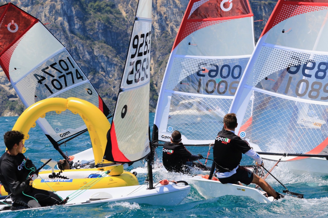 Il Garda Trentino ha regalato altre tre fantastiche giornate alla sessantina di giovani velisti arrivati da tutta Italia per partecipare alla regata nazionale FIV del singolo Open Skiff, manifestazione organizzata dal Circolo Vela Arco, su delega della Federazione Italiana Vela, per bambini e ragazzi dagli 8 ai 17 anni, impegnati su questa barca veloce, acrobatica e divertente. Dopo le prime due giornate in cui si è regatato nel classico orario dalle 13 alle 17 circa disputando 7 regate (4+3), mercoledì, ultimo giorno in programma, le condizioni sono state opposte dato che è stata data partenza alle 8:30 con il vento da nord, più rafficato e con acqua piatta rispetto all”ora” del pomeriggio. Condizioni che hanno fornito un range di prove diverse tra loro e dato la possibilità a tutti di mostrare il valore tecnico in campo con ulteriori tre regate per un totale di 10 prove e l’applicazione di 2 scarti. Il campo di regata è stato posizionato con le nuove boe elettriche del Consorzio Garda Trentino Vela, che hanno mantenuto la posizione GPS con una facilità di utilizzo tale da rendere efficace e rapida la comunicazione tra Comitato di Regata e posaboe, che hanno dovuto velocemente adeguarsi a questi nuovi mezzi, la vera novità delle regate sul Garda Trentino, tratto di lago che ha profondità che arrivano anche oltre i 200 metri. Da segnalare che anche la pilotina di partenza ha mantenuto la posizione governata da segnale GPS, sincronizzato con motore elettrico installato a prua.