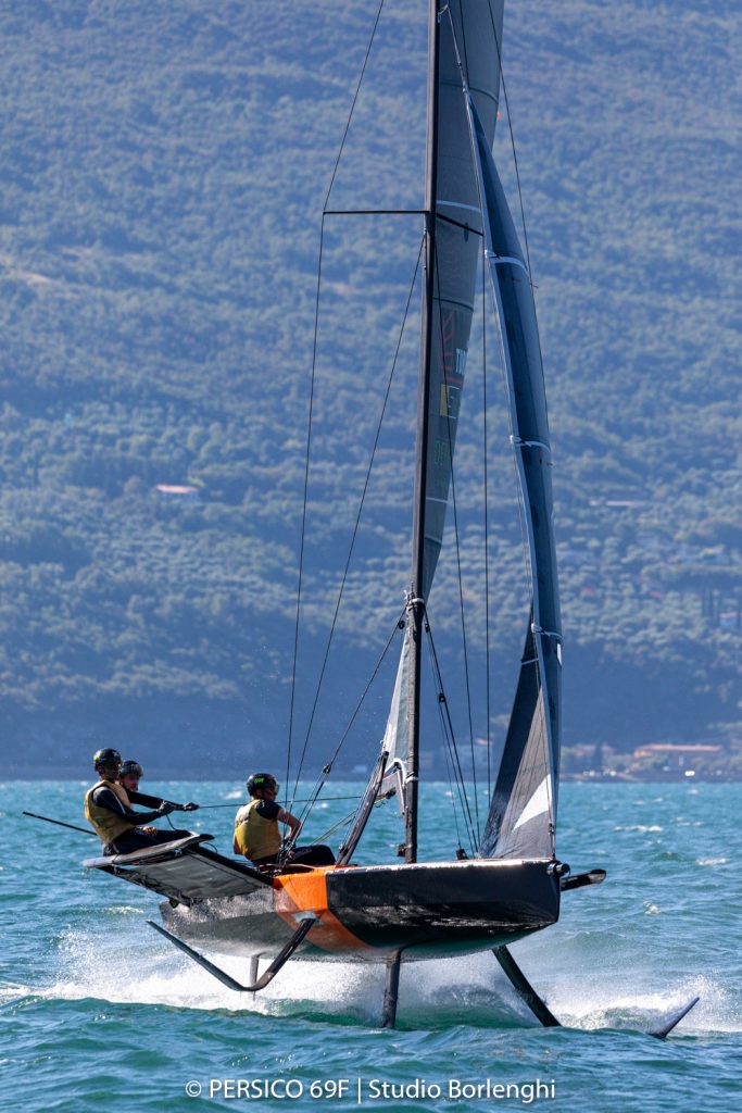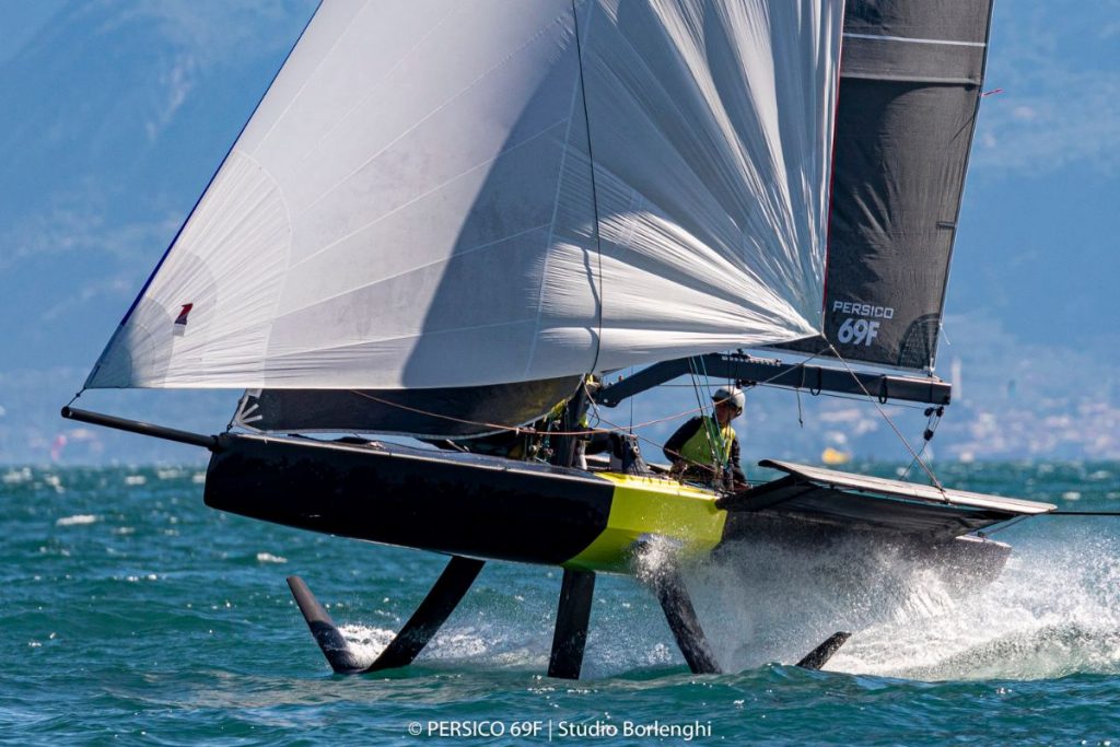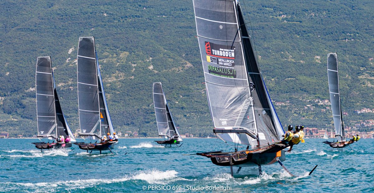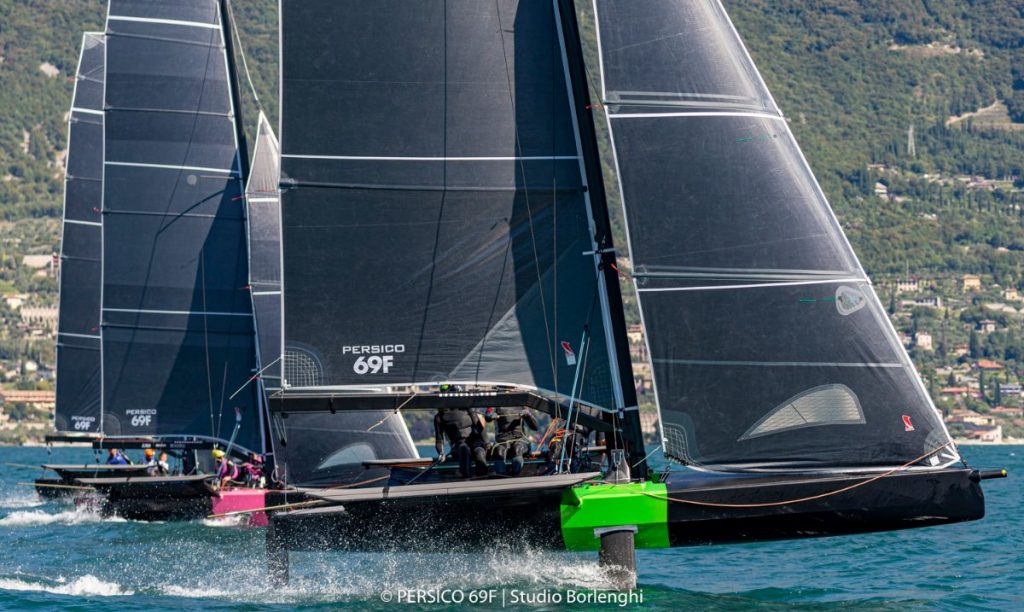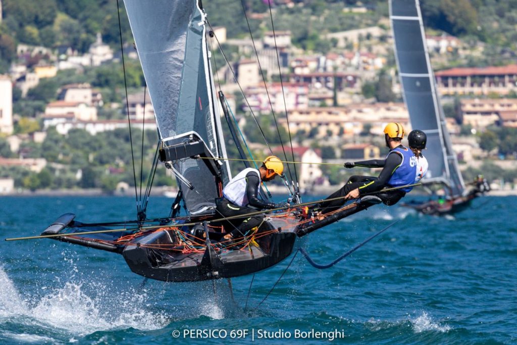 Otto prove in otto ore. Dopo lo stop imposto dal meteo venerdì, il Grand Prix 1.2 della Persico 69F CUP a Gargnano ha risarcito oggi, e con gli interessi, i cinque eccezionali equipaggi di velisti professionisti al via della seconda tappa. Prima il Peler mattutino, fino a 18 nodi e con onda, quindi l’Ora fino a 14 nodi nel pomeriggio hanno creato condizioni ottimali per incroci, splendide manovre sui foil e regate combattute.