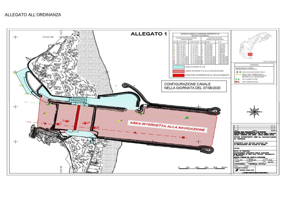 La movimentazione delle paratoie comporterà la totale interdizione della navigazione, della sosta e ancoraggio e qualsiasi altra attività marittima all’interno delle dighe dei porti di Chioggia, Malamocco e Lido di Venezia,stabilita con ordinanze n°65/2020 della Capitaneria di porto di Venezia e n°53/2020 dalla Capitaneria di Porto di Chioggia, prevista venerdì 07 agosto 2020, dalle ore 06:30 alle ore 14:30.