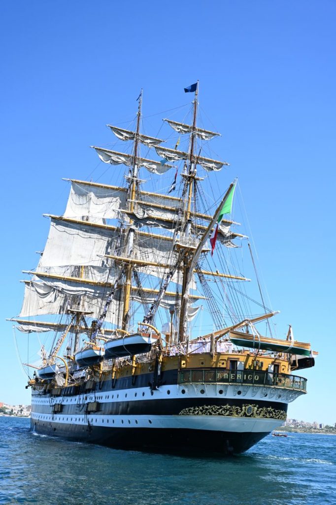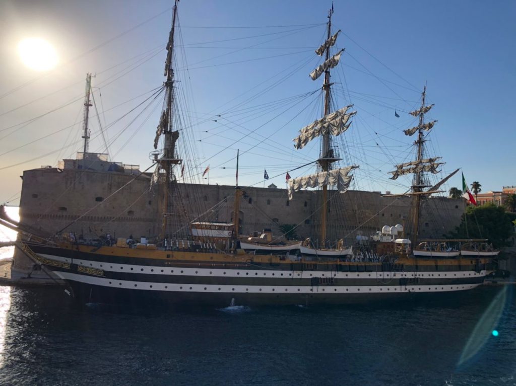 La nave a vela, “ambasciata itinerante” per antonomasia dell’Italia nel mondo e custode dei valori della Marina Militare, rimarrà ormeggiata presso il Castello Aragonese e la sera si illuminerà con il tricolore, per salutare simbolicamente la citta di Taranto e la popolazione, pur non essendo permesse le visite a bordo nel rispetto delle norme di contrasto alla diffusione del Covid-19.