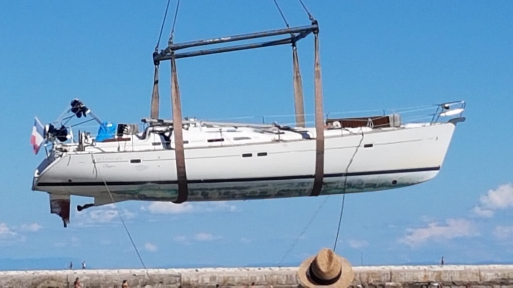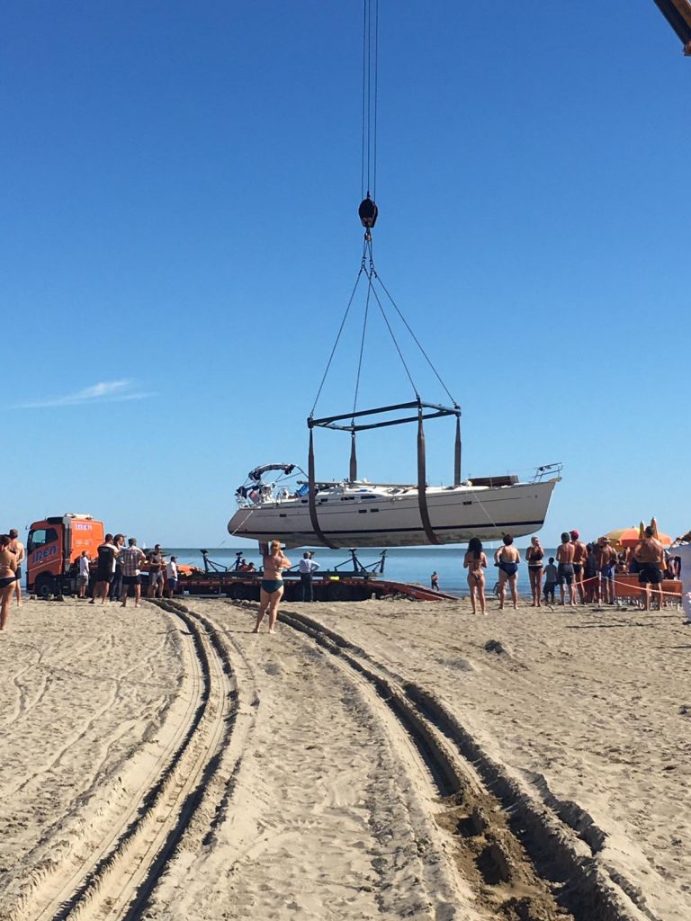 L’imbarcazione, prima di essere caricata su un camion, è stata quindi disalberata e le è stato rimosso il bulbo.