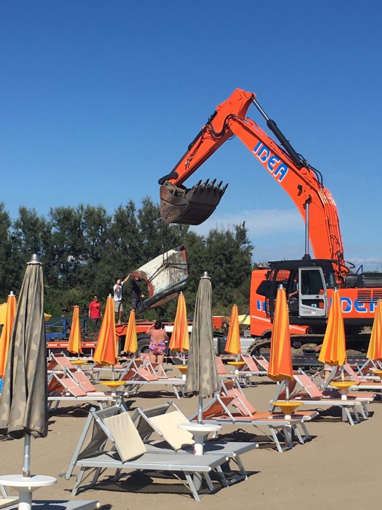 Dopo i vari tentativi effettuati dal mare nei giorni scorsi per riportare al suo naturale galleggiamento l’imbarcazione, stamane si è deciso di cambiare strategia intervenendo via terra. Sulla spiaggia si sono infatti presenti un escavatore ed una grossa gru. La stessa infatti sembra aver subito troppi danni e non sarebbe più in grado di poter navigare senza prima subite alcuni interventi allo scafo e al bulbo.