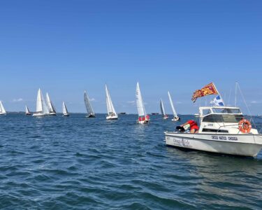 Anche la seconda partenza è pulita ma più decisa. Gli equipaggi sono più affiatati e la voglia di far bene è tanta, e si vede. Anche se il percorso è lo stesso del precedente, cambia tutto. La prospettiva è diversa, il vento e diverso gli incroci anche. Si rischia ancora di uscire dalla rotta e si naviga a vista sul fondale. A metà percorso si forma una bellissima fila di vele bianche che è uno spettacolo da vedere, mentre due barche completamente differenti tra loro vanno in volata verso l’arrivo.