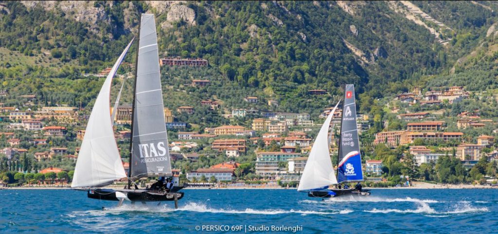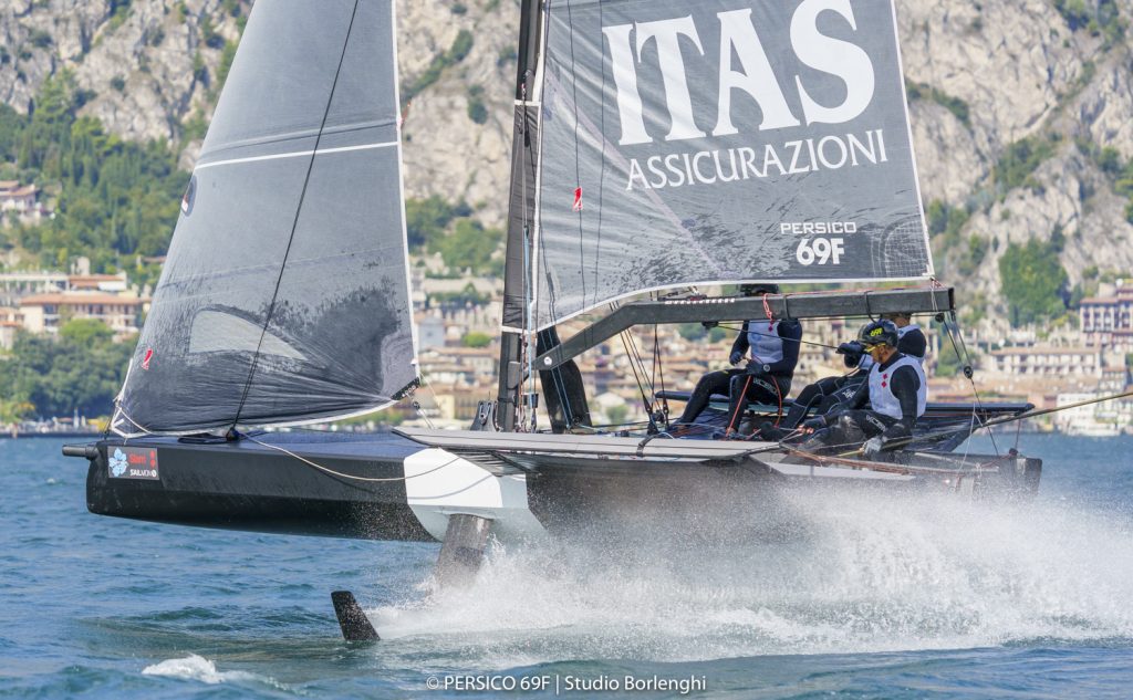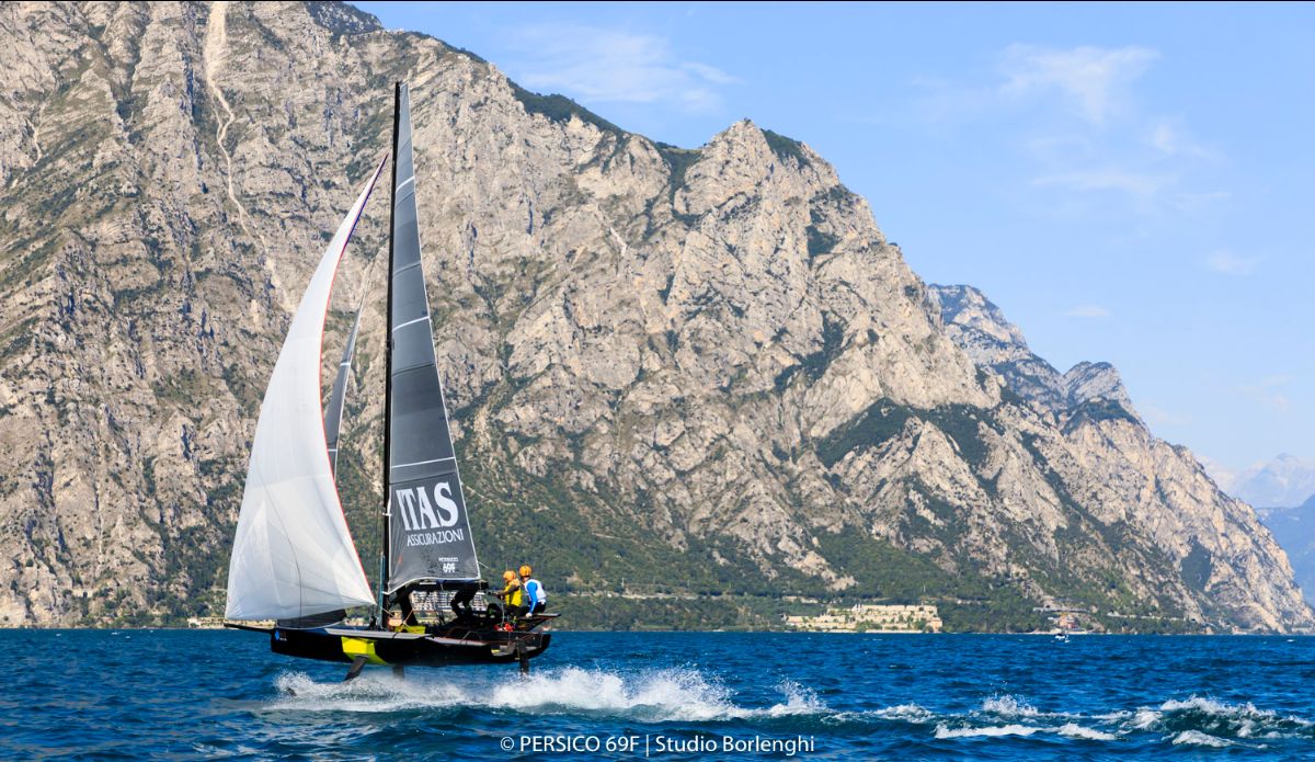 Vento forte e rafficato da nord, un Lago di Garda con onde ripide, sei barche e sei equipaggi pronti a domare queste condizioni volando oltre i 30 nodi: eccola la prima giornata dell’ITAS Assicurazioni Grand Prix 2.1 della Persico 69F CUP che a Malcesine, nel contesto della Foiling Week, ha regalato regate impegnative ed estremamente divertenti.