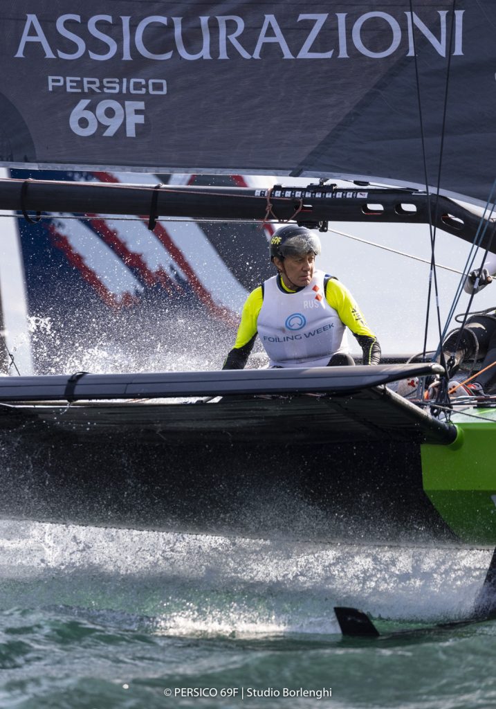 Tra gli elementi da sottolineare oggi, l’esordio nel circuito dell’amatore Lanfranco Cirillo, un battesimo dei foiling con sei prove che gli fa davvero onore.