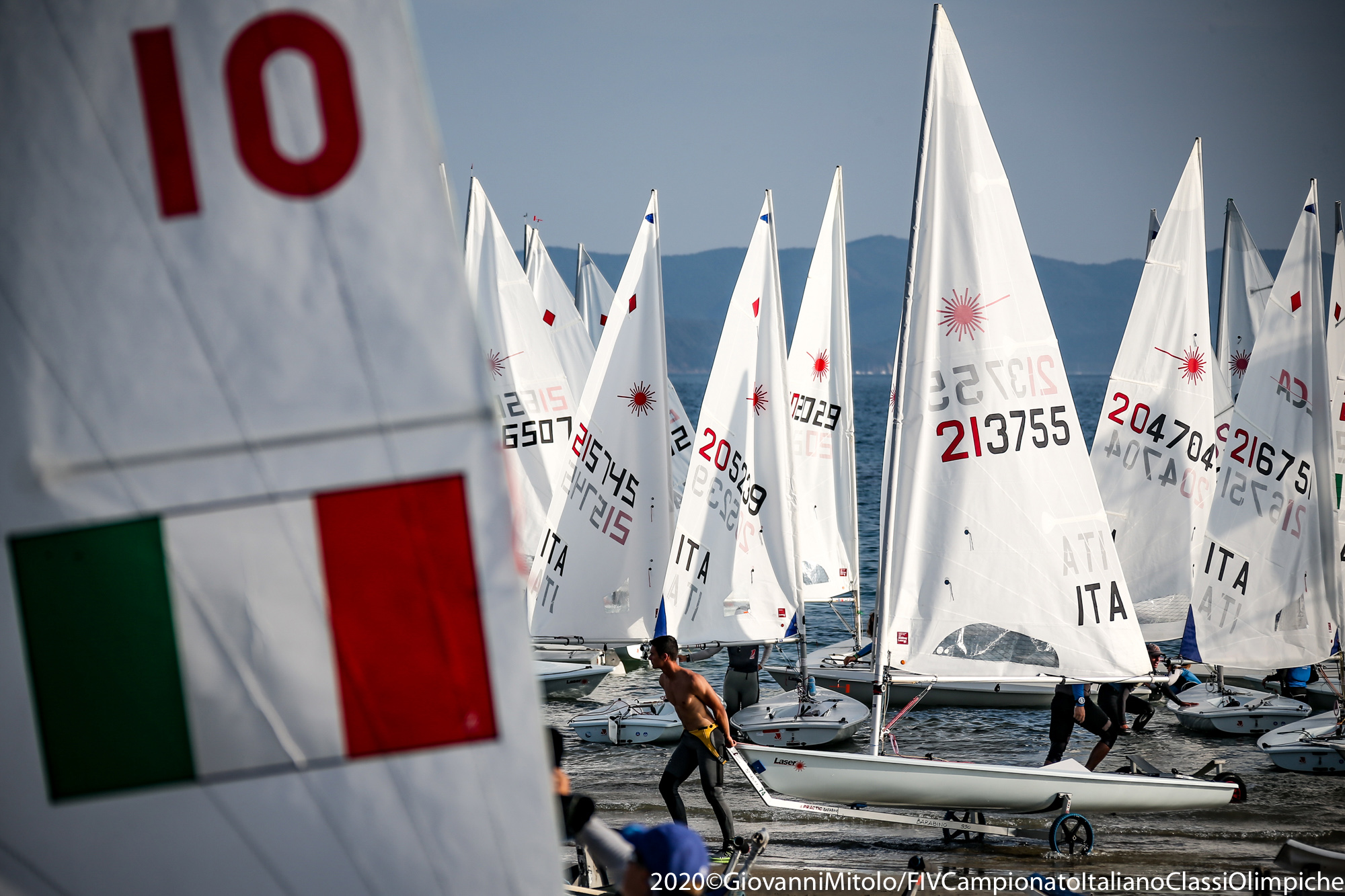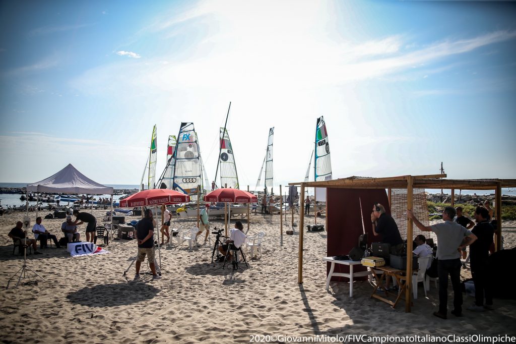 Con le classifiche invariate, la volata per il titolo italiano e il podio in tutte le classi è rinviata a domani domenica 20. Le previsioni indicano vento da Sud già dal mattino, e la partenza di tutte le regate è anticipata alle 11:00. L’orario limite per dare la partenza nell’ultimo giorno è fissato alle 15:30, ed è probabile che si riescano a disputare due o tre prove, completando così il campionato. La premiazione chiuderà il CICO 2020, ricordato per le mascherine e i distanziamenti, e assegnerà gli ambiti titoli tricolori delle discipline olimpiche.