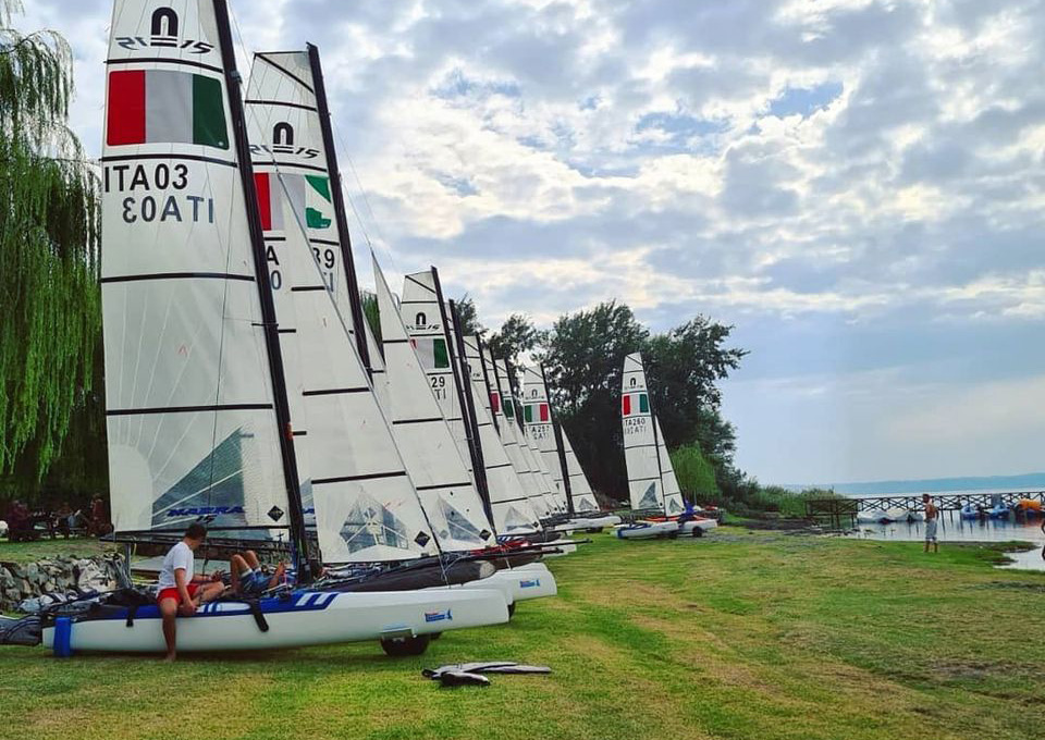 Secondo giorno a Trevignano Romano, sul lago di Bracciano, per il campionato italiano del catamarano giovanile Nacra 15, il vento medio-leggero ha consentito lo svolgimento di due regate, portando il totale del campionato prima della giornata finale di domani a cinque regate.