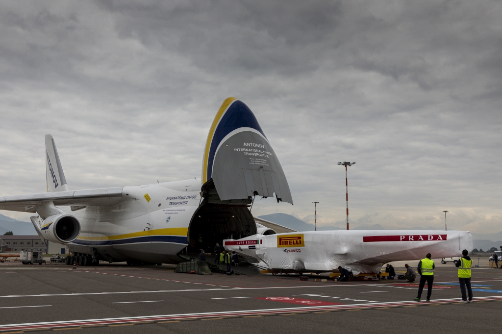 Barca 2, costruita presso il cantiere Persico Marine di Bergamo, distante poco più di 10 km dall’aeroporto, è stata trasferita con un trasporto eccezionale ed imbarcata su un Antonov 124-100, uno degli aerei cargo più grandi in circolazione.