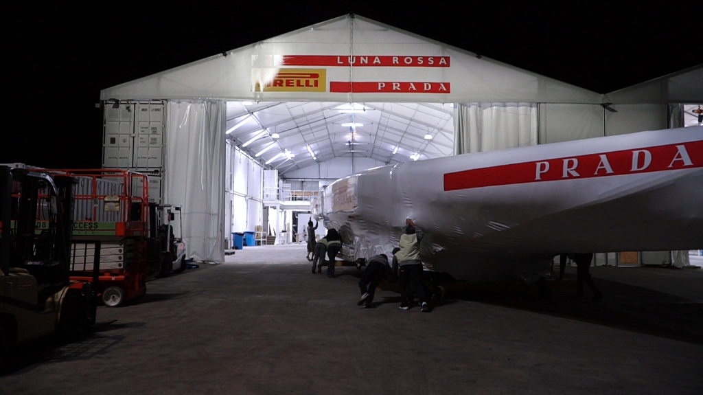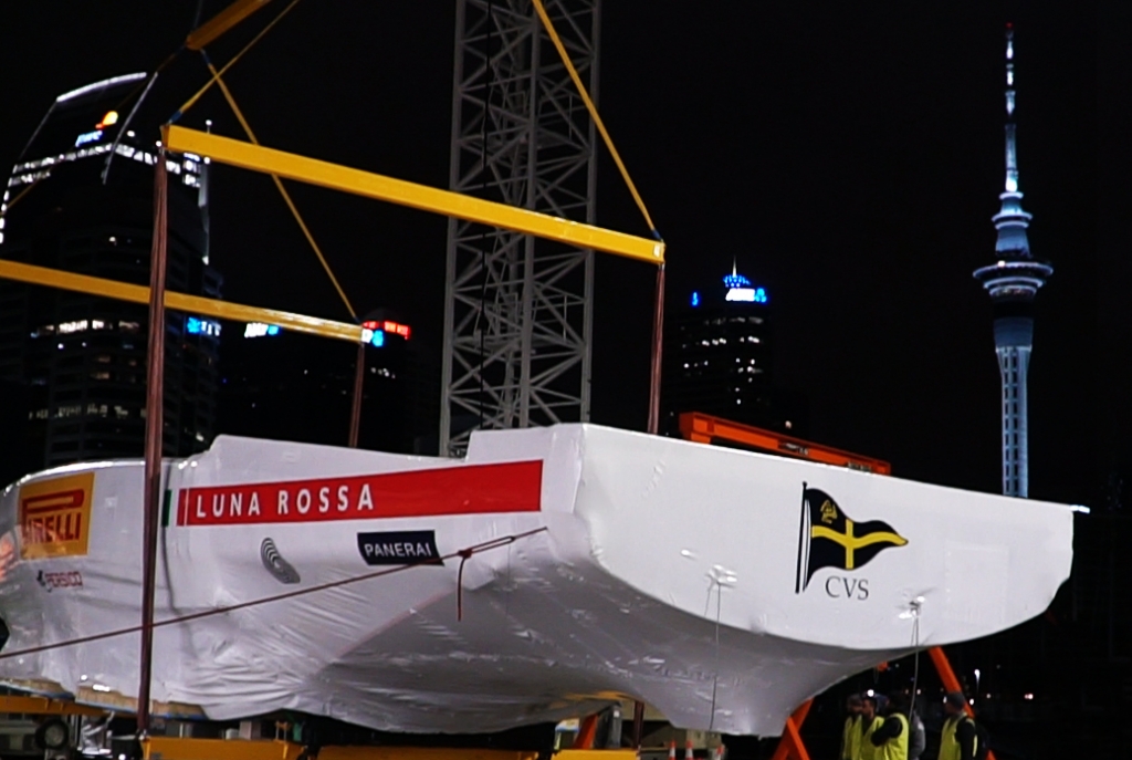 Nel corso della notte, la barca e tutta l’attrezzatura sono state trasportate alla nuova base, presso l’Hobson Wharf, dove in questi giorni verrà completato l’assemblaggio e avranno inizio i primi load test. Il varo è previsto entro la fine di ottobre e successivamente il team inizierà gli allenamenti nel Golfo di Hauraki.