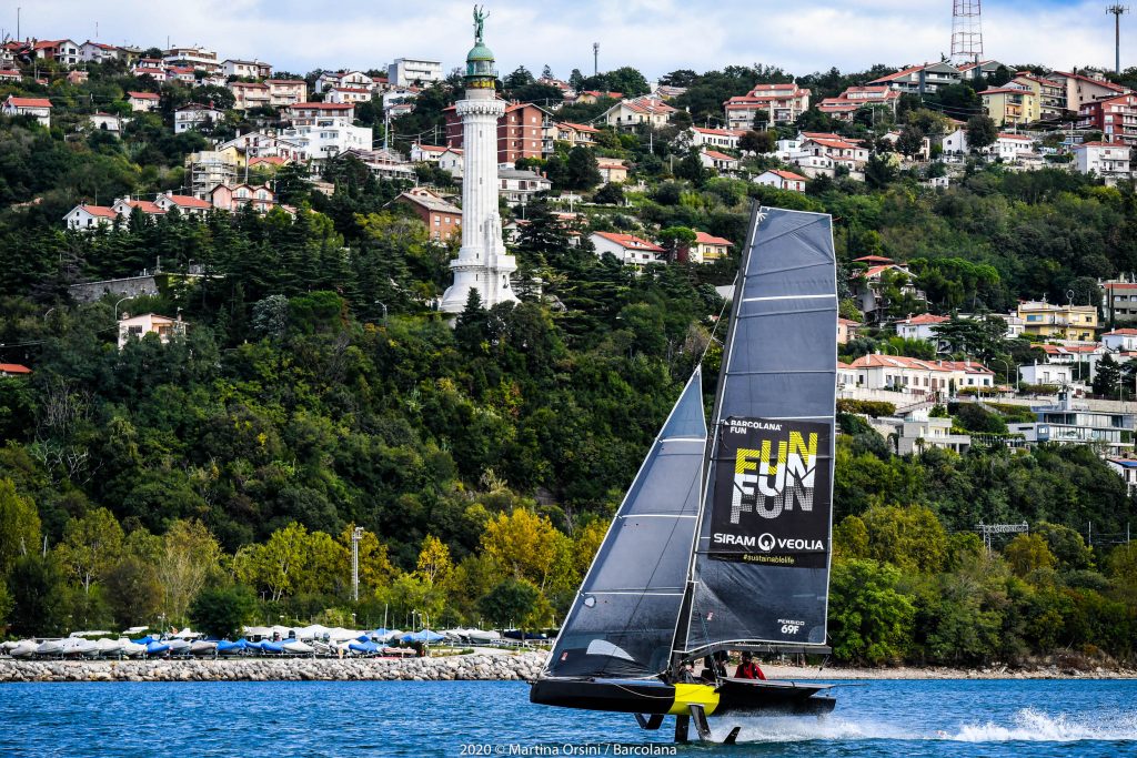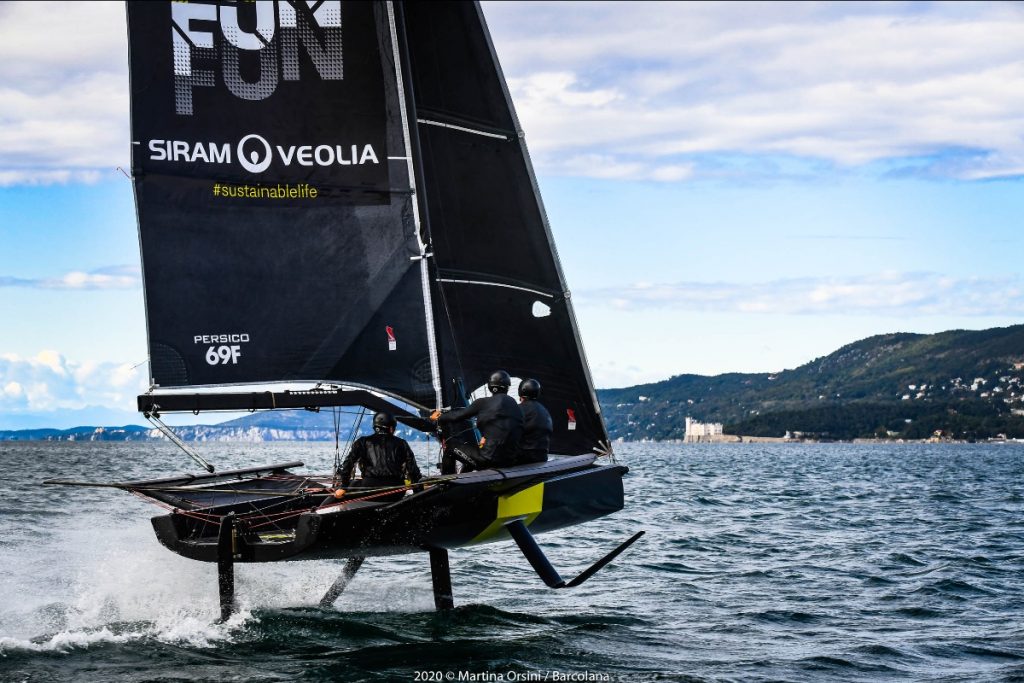 Ma stamani, con Bora, la velocità andava cercata intensamente, raffica per raffica. “Siamo pienamente entrati nel puro spirito di Barcolana – ha dichiarato il presidente della Società Velica di Barcola e Grignano Mitja Gialuz – quello in mare tra divertimento, sano agonismo, tutela dell’ambiente e sviluppo di nuovi progetti che coinvolgono tanti giovani. Grazie a Siram Veolia portiamo avanti ogni anno questi valori. Avvicinare i giovani ai foil, dare loro la possibilità di provare queste incredibili imbarcazioni, significa proiettarli nel futuro della vela. I Persico 69F hanno avuto il loro battesimo del mare qui a Trieste un anno fa e un anno dopo li ritroviamo, a valle di una stagione di regate molto interessante. Il bello è che la Bora è sempre qui, pronta a sfidarli”.