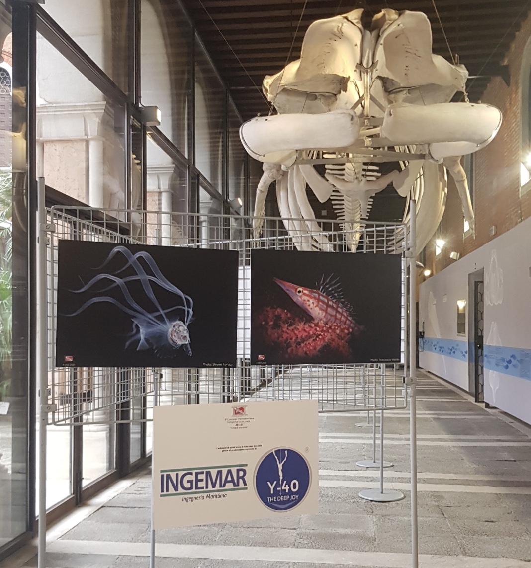 Tra le immagini esposte alcune attirano l’attenzione come la foto di un esemplare allo stadio larvale di Baccalà dalle orecchie ossute che vive tra i 1000 e i 4000 mt di profondità e con una speciale tecnica fotografica viene richiamato alla superficie. Lo scatto è stato realizzato nelle profonde acque della Florida dal fotografo subacqueo statunitense Steven Kovacs.