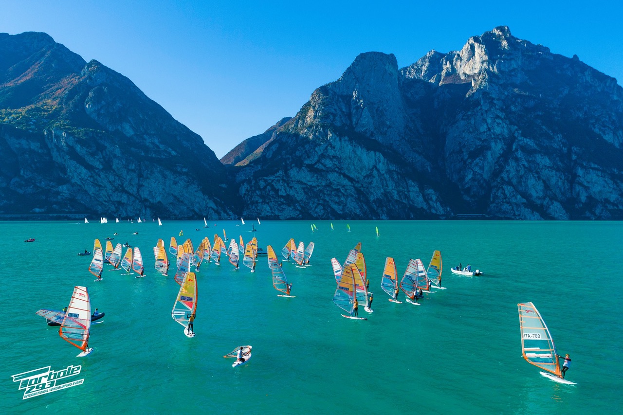 Con una splendida giornata di sole e vento da nord è iniziato al Circolo Surf Torbole, sul Garda Trentino, l’evento internazionale Techno 293, che va a sostituire il Mondiale di classe rimandato al 2021.