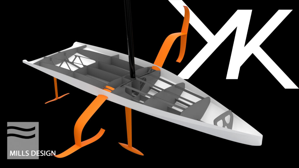 “Siamo davvero orgogliosi di poter sviluppare il progetto di design al momento più entusiasmante al di fuori dell’America’s Cup. La visione di Roberto Lacorte è di essere il primo armatore ad avere un foiler di dimensioni Mini Maxi, in grado di correre regate lunghe e di far conoscere queste barche ad un pubblico più ampio. Prenderemo molti spunti dagli AC75 e li metteremo insieme in un pacchetto più facile da usare, economico e in grado di navigare in una gamma più ampia di condizioni”, spiega Mark Mills. “La progettazione di una barca simile è molto impegnativa, per questo abbiamo riunito un team di specialisti, un gruppo di 10 uomini con esperienza in 3 delle 4 squadre di America’s Cup in regata ad Auckland. I nostri partner in ricerca e sviluppo KND forniranno gli strumenti analitici per valutare la nuova topografia del design, con il contributo aerodinamico degli specialisti della North Sails, mentre Pure Engineering fornirà la competenza tecnica per produrre la piattaforma più leggera e affidabile possibile. I primi sei mesi di lavoro preliminare di progettazione si sono concentrati sulla validità dell’idea di base, utilizzando il simulatore dinamico Gomboc sviluppato da Team New Zealand e il VPP North Sails per valutare varie configurazioni e geometrie dei foil, in volo e in modalità di dislocamento. Guidata dal suo fondatore Giovanni Belgrano, Pure ha sviluppato una soluzione di articolazione dell’ala completamente nuova per ridurre il costo del foil e migliorare l’affidabilità di un progetto che opera al di fuori delle condizioni meteo specifiche dell’America’s Cup. La nostra visione per il design”, prosegue con entusiasmo Mills, “è una piattaforma semplice e robusta in grado di avere tutti i requisiti necessari per partecipare alle regate offshore tradizionali, a partire dalla certificazione relativa alle Offshore Special Regulation. La forma dello scafo di FlyingNikka sarà diversa dagli AC75, perché il contatto con la superficie dell’acqua sarà maggiore. La gestione dei foil e di tutti i sistemi idraulici di bordo coinvolgerà solo 5 persone, consentendo al timoniere di concentrarsi sulla navigazione senza dover controllare direttamente l’altezza del volo. Al momento ci stiamo concentrando sullo sviluppo e l’ottimizzazione della geometria e dei sistemi di progettazione. Nel corso dei prossimi tre mesi finalizzeremo la configurazione dello scafo e della coperta prima dell’inizio della costruzione. La selezione del cantiere è in una fase avanzata, guidata dall’esperto Project Manager Micky Costa che ricopre un ruolo cruciale nel progetto, visto che è il collegamento tra progettisti, costruttore ed equipaggio, per riuscire a realizzare una barca affidabile, semplice ed efficace”.